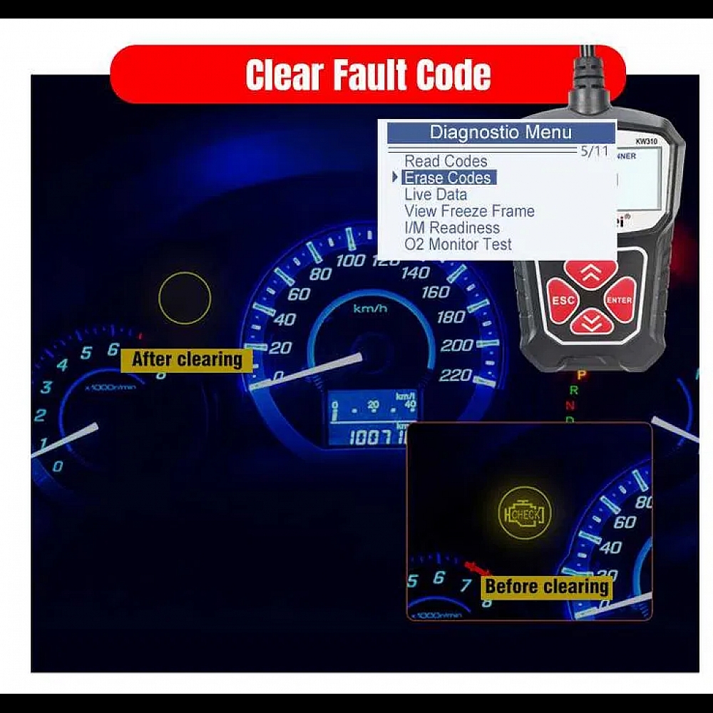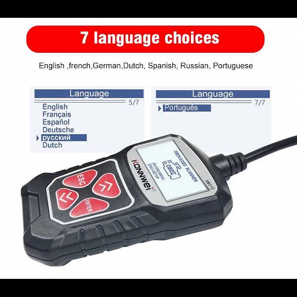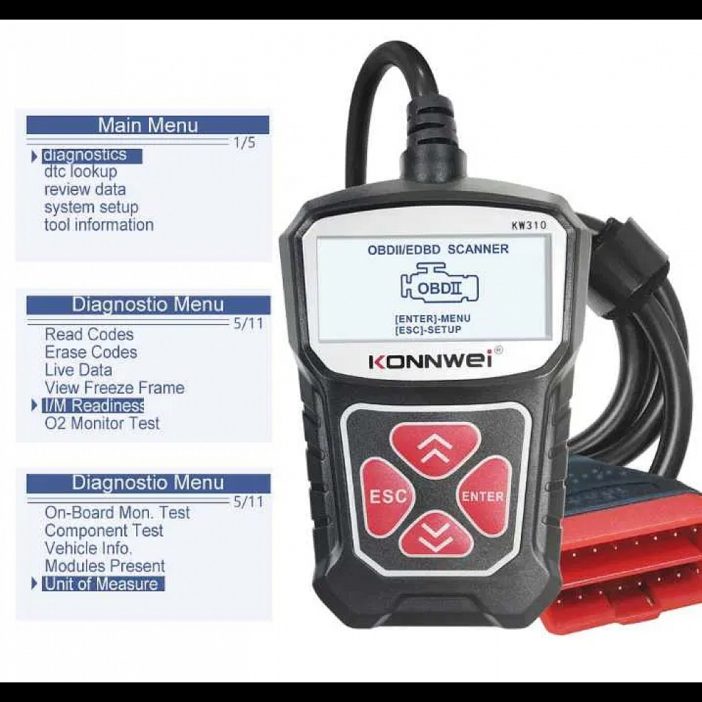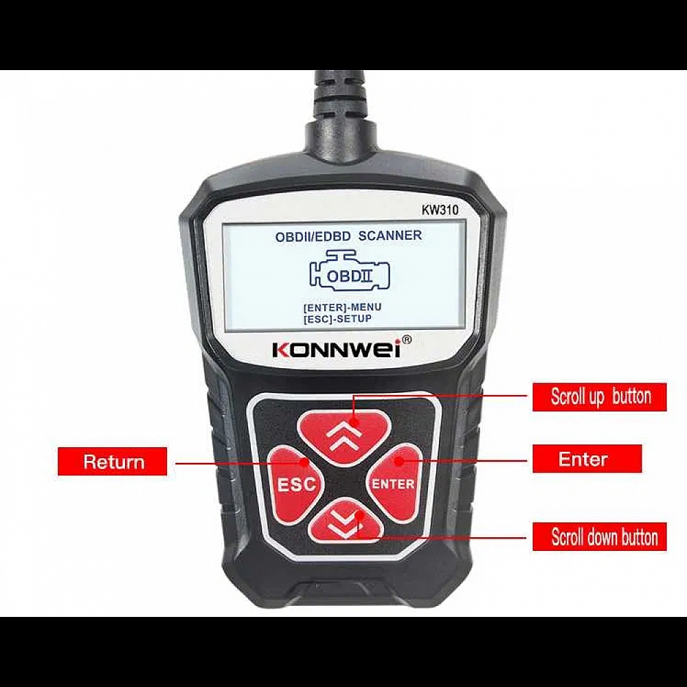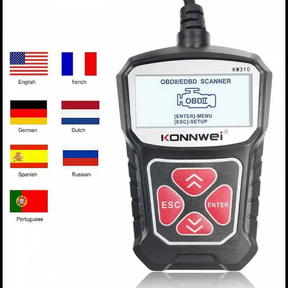 Konnwei KW310 - пристрій для діагностики автомобіля підключається до гнізда OBD2 та дозволяє самостійно зчитувати та скидати коди несправностей, перевіряти роботу різних систем.