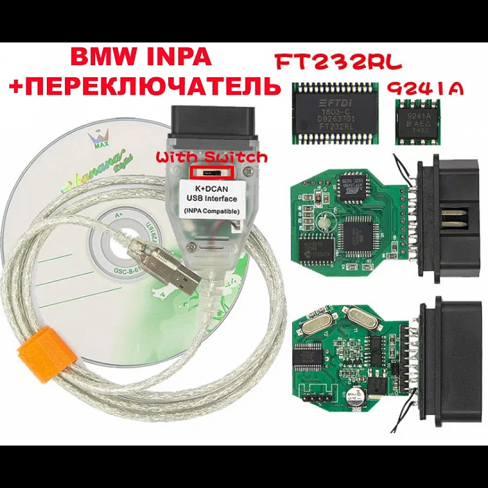BMW INPA діагностичний сканер K+DCAN +перемикач FT232RL OBD2 обд