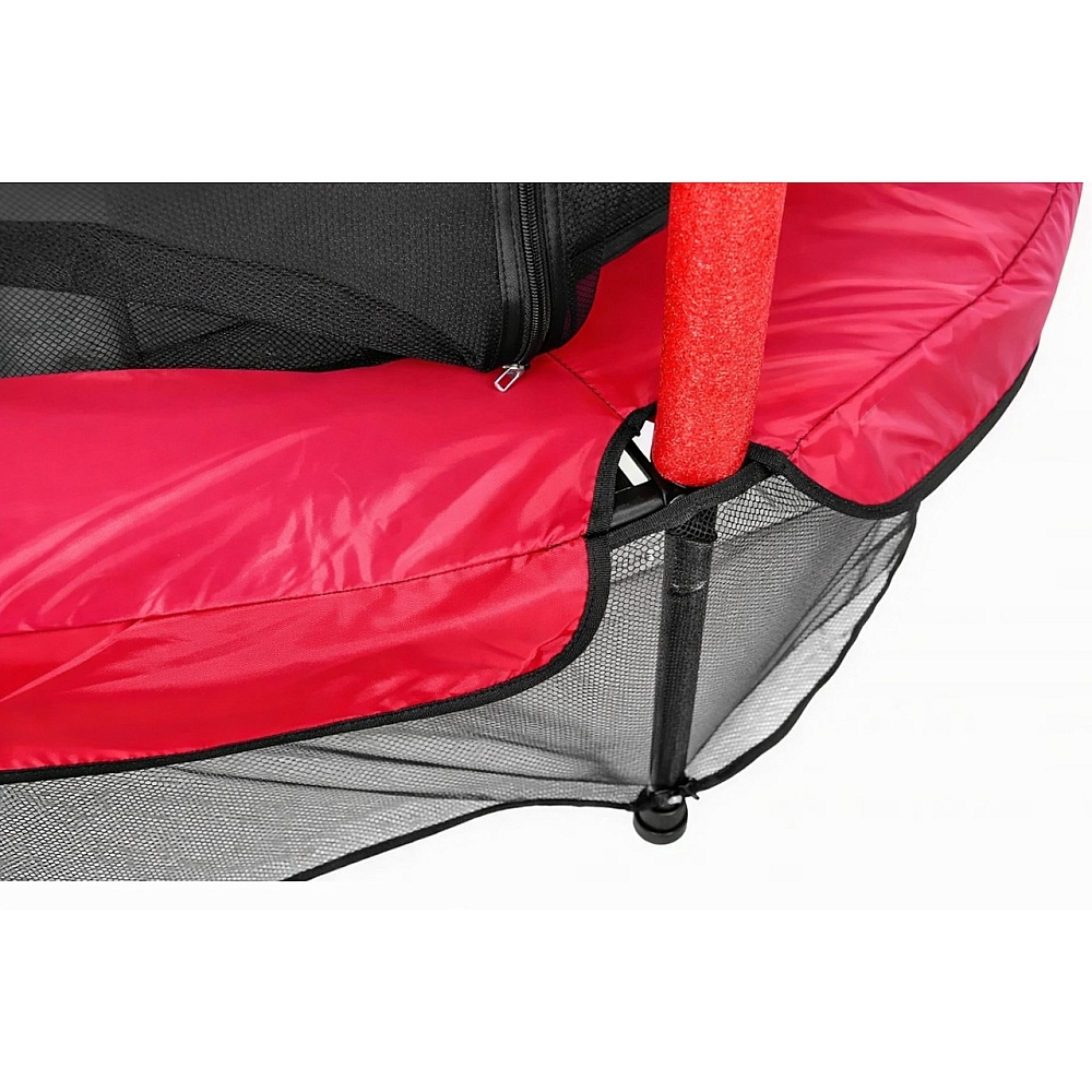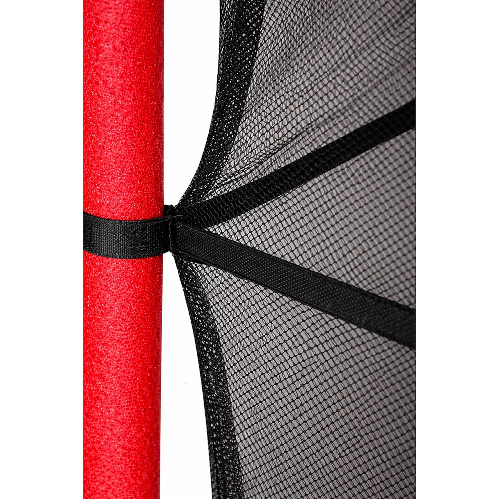 Металева рама забезпечує стійкість конструкції, а захисна сітка по периметру створює безпечний простір під час стрибків. Завдяки шести опорам сітки конструкція є стабільною та надійною навіть під час активних рухів.