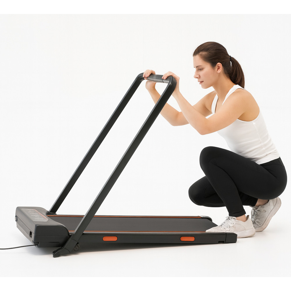 Модель оснащена електродвигуном з піковою потужністю 1100 Вт, що забезпечує стабільну роботу та плавний хід бігового полотна. Максимальна швидкість до 12 км/год дозволяє підібрати індивідуальний темп тренування — від спокійної ходьби до помірного бігу.