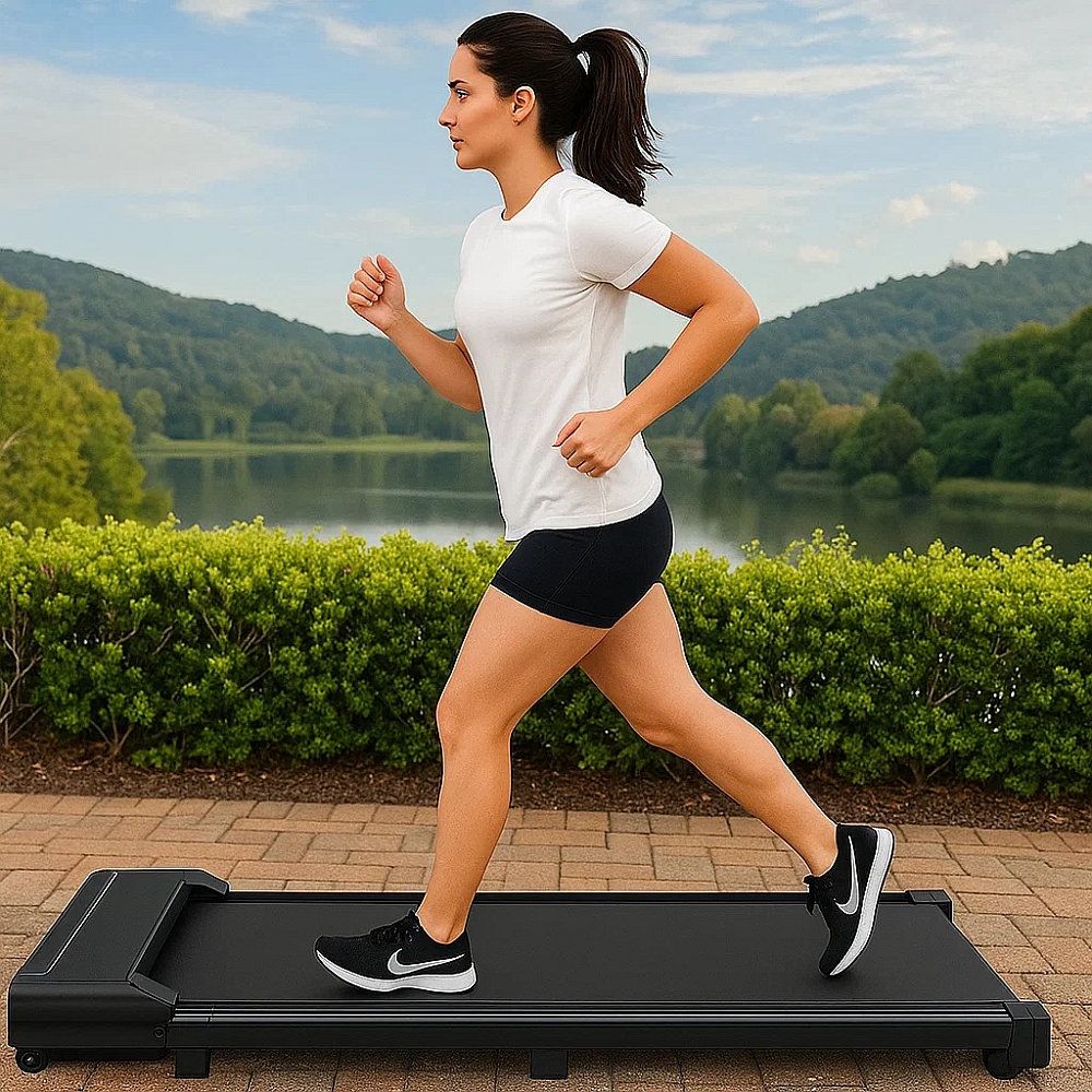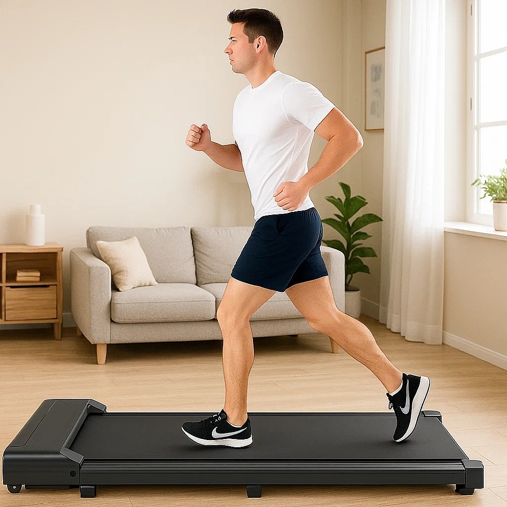 Мотор потужністю 0.65 HP забезпечує швидкість від 1 до 8 км/год, чого достатньо для ходьби, швидкої ходьби чи легкого бігу. Максимальна вага користувача — 110 кг, що робить доріжку універсальною та надійною для більшості користувачів. Завдяки складній та надзвичайно тонкій конструкції усього 102 мм у висоту, модель легко зберігати під ліжком, диваном чи в шафі.