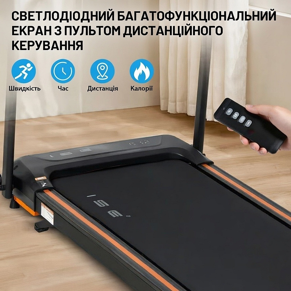 Швидкість регулюється в діапазоні від 1 до 12 км/год, що дозволяє використовувати її як для швидкої ходьби, так і для бігу. Антиковзке полотно та інтегрована система амортизації зменшують навантаження на суглоби та забезпечують комфорт під час тренувань.