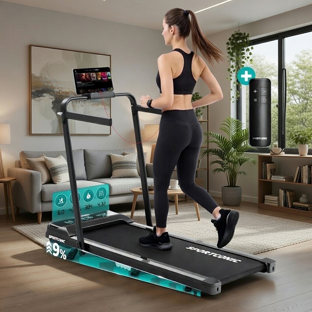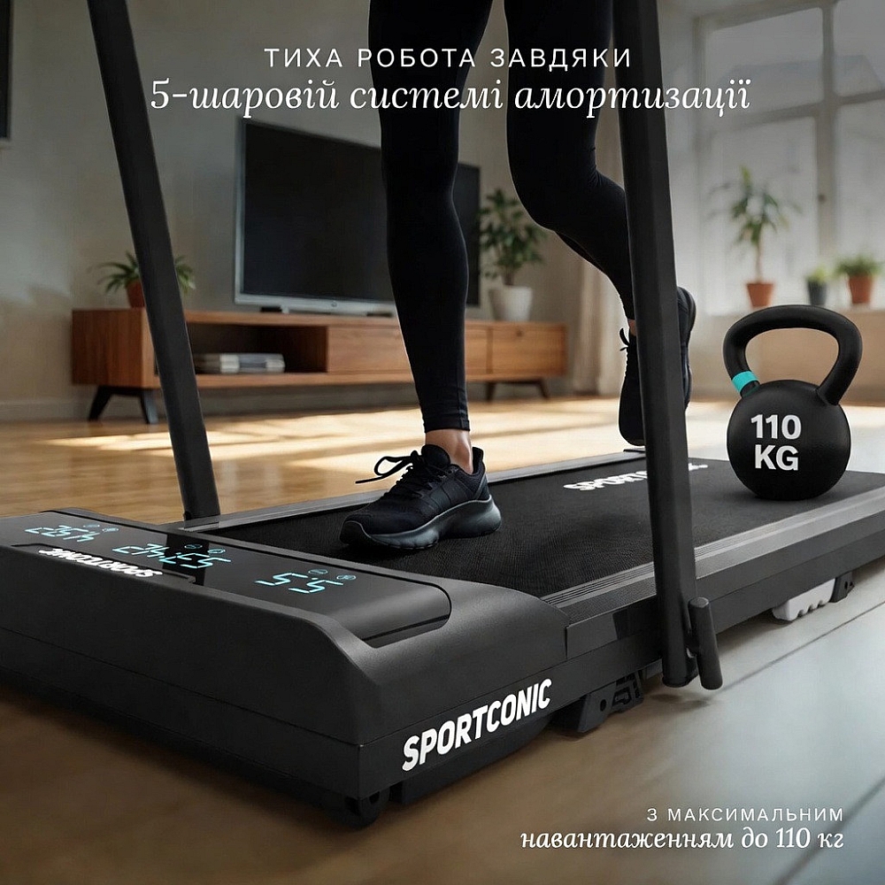Бігова доріжка Sportconic P106FA Pro — це сучасне рішення для домашніх тренувань, яке поєднує компактну складну конструкцію, тиху роботу та зручний функціонал для щоденного використання. Модель підходить для ходьби, бігу та джогінгу, тому стане чудовим вибором для тих, хто хоче підтримувати активність вдома незалежно від погоди чи графіка.
