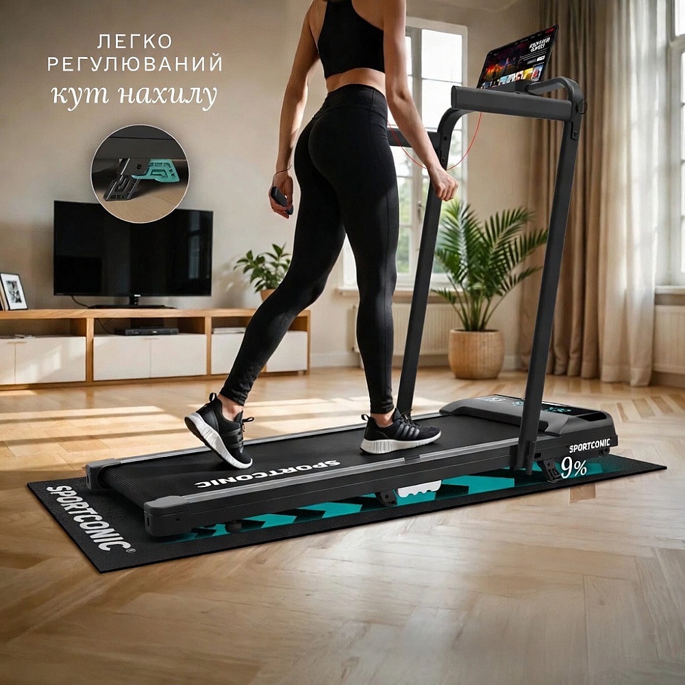 Доріжка оснащена регулюванням швидкості від 1 до 12 км/год, що дозволяє легко підібрати комфортний темп тренування. Додатковою перевагою є регульований кут нахилу до 9%, який допомагає зробити заняття більш інтенсивними та урізноманітнити навантаження. Завдяки цьому модель підходить як для легких щоденних прогулянок, так і для більш активних кардіотренувань.