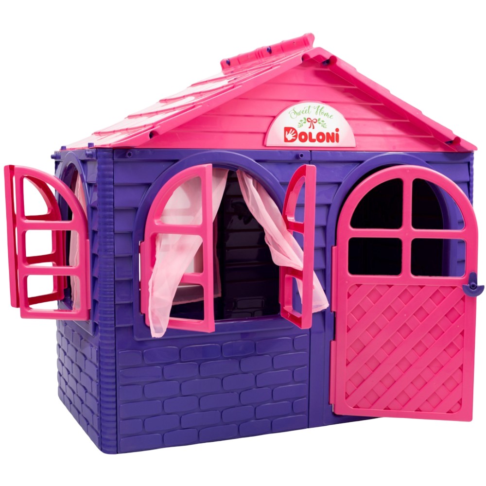 Дитячий будиночок Doloni зовні дуже схожий на справжній будинок, у якому є шторки. Вікна та двері відчиняються. Завдяки великим розмірам у ньому зможе поміститися кілька дітей.