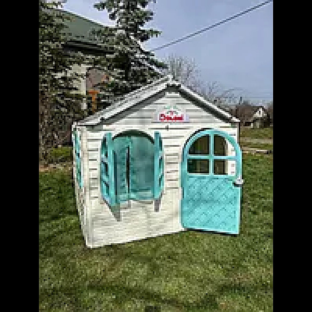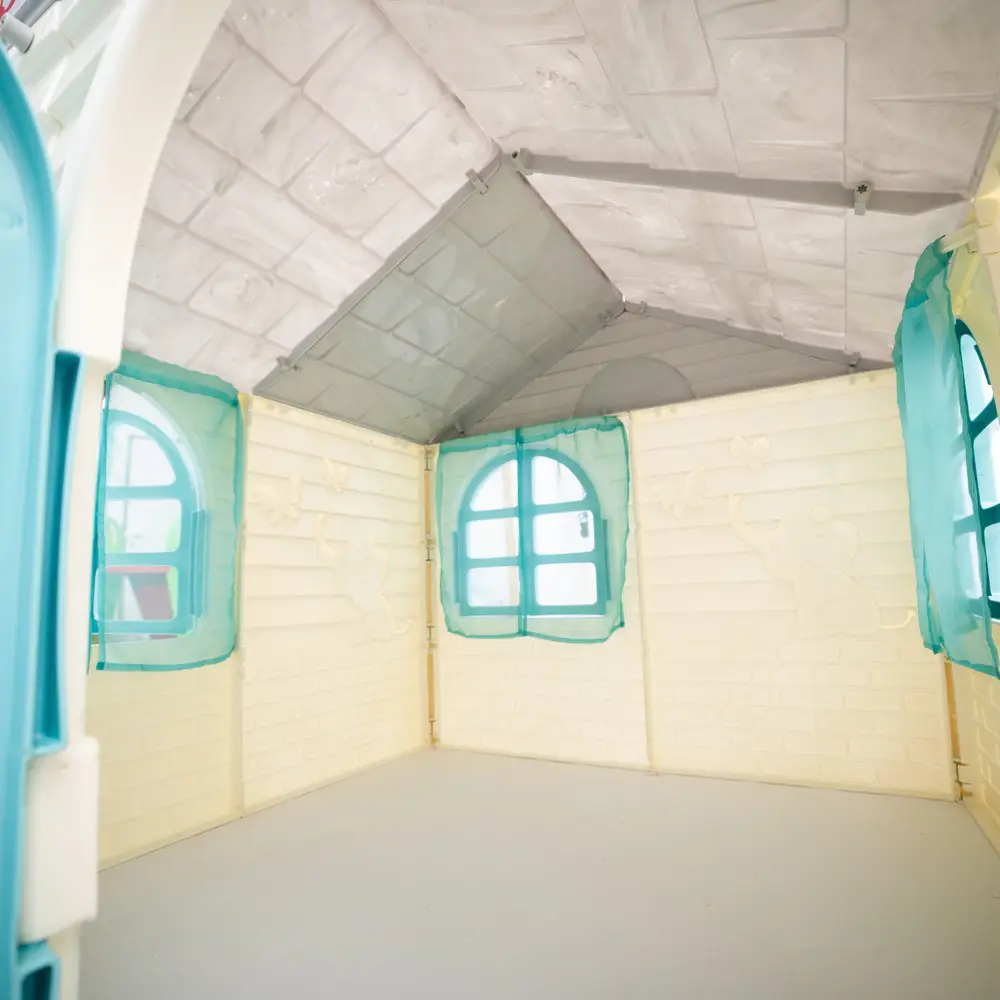 Дитячий будиночок зовні дуже схожий на справжній будинок, у якому є шторки. Вікна та двері відчиняються. Завдяки великим розмірам у ньому зможе поміститися кілька дітей.