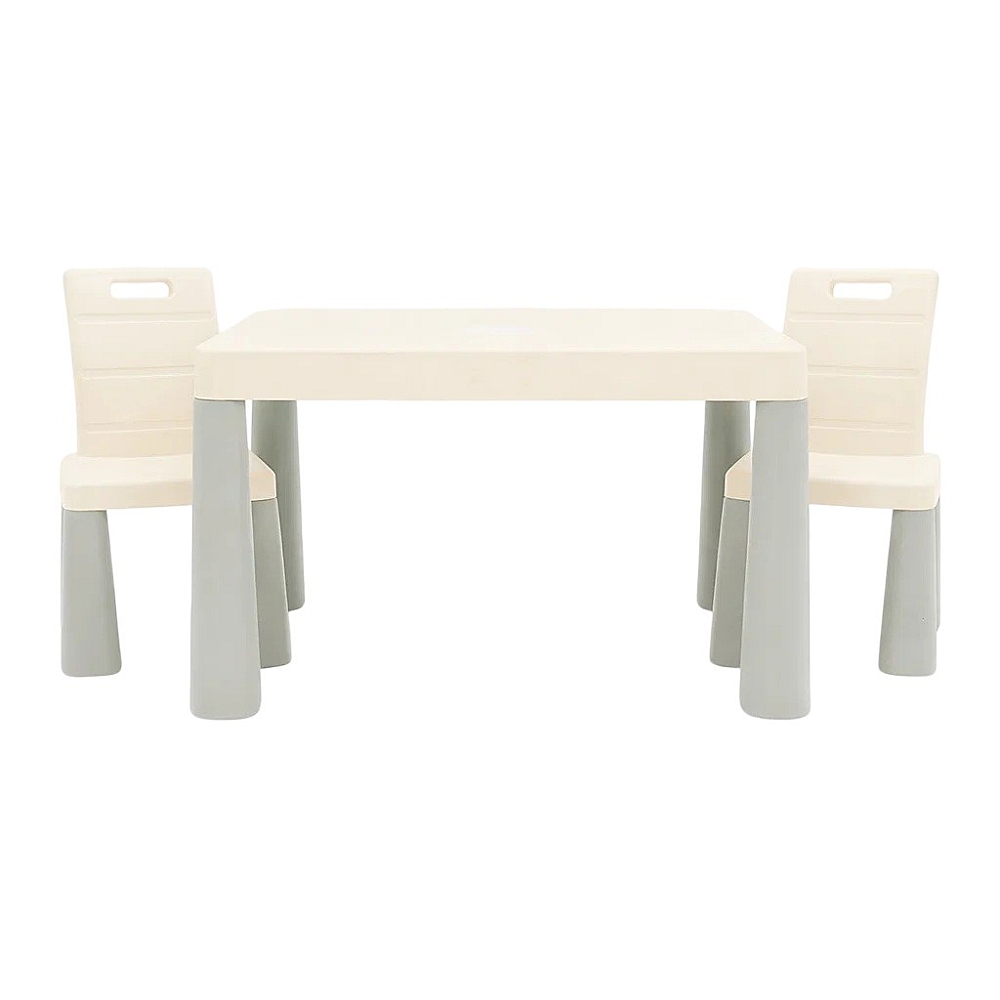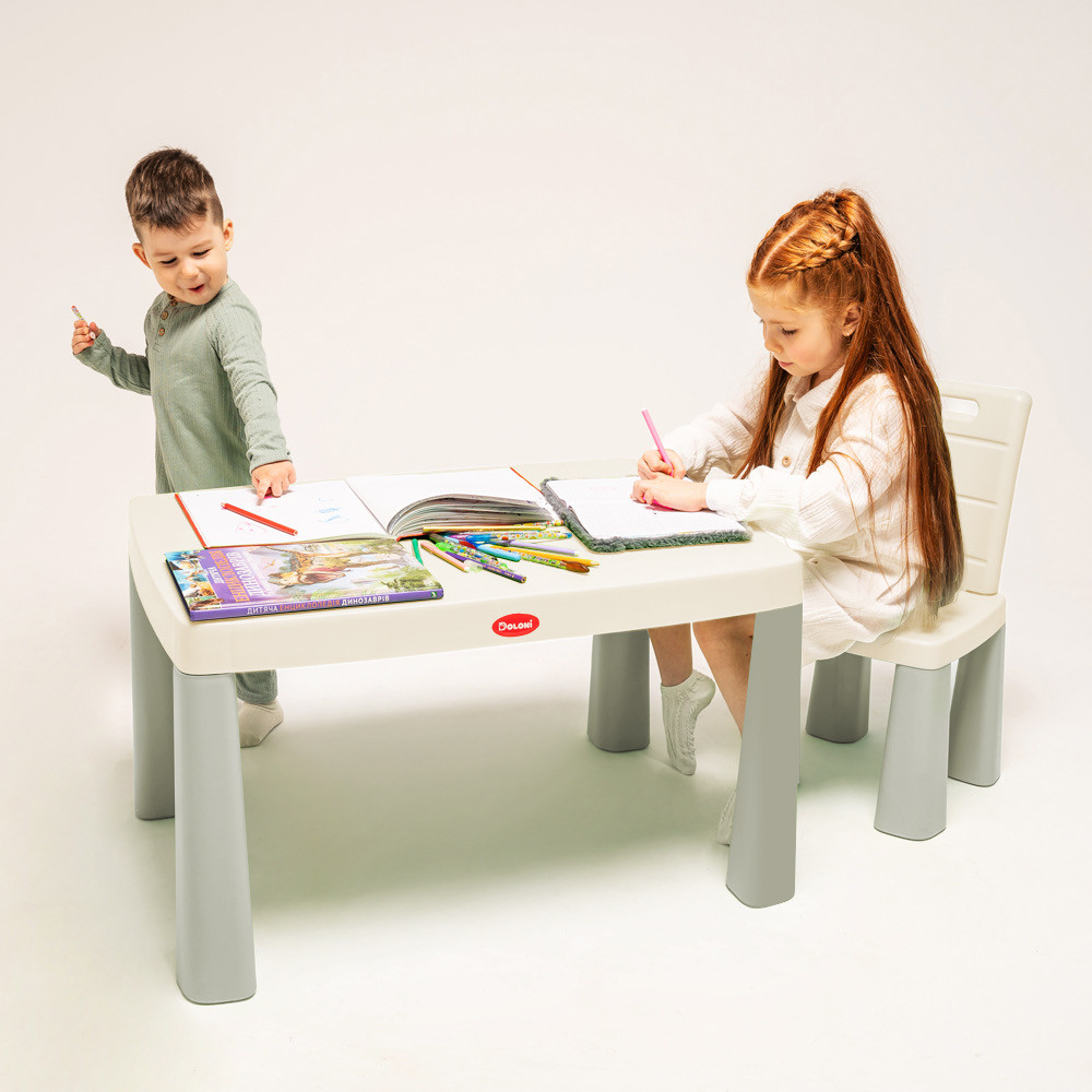 Дитячий стіл та два стільці Doloni пластиковий сіро-молочний — це практичний та зручний комплект дитячих меблів для дому, дитячої кімнати або ігрової зони. Комплект складається зі столика та двох стільців і чудово підходить для навчання, творчості, ігор або спільного чаювання.