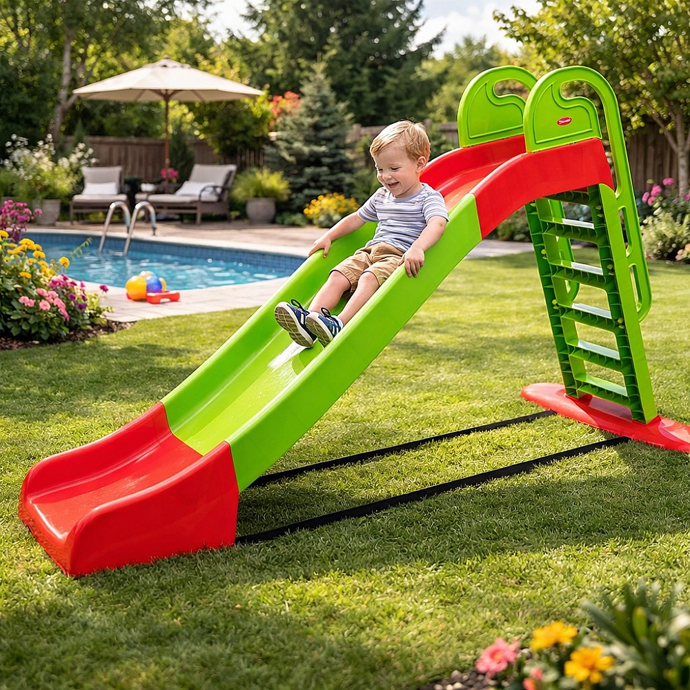Гірка довжиною 243 см ідеально підходить для використання в будинку та в саду! Спуск має міцну і стабільну структуру, що гарантує безпечну гру. Завдяки своїй конструкції і дуже легкому монтажу, ми можемо взяти це в будь яке місце. За бажанням можна підключити розпилювач води до виходу, з'єднавши воду з садовим шлангом з нижньої частини ковзання.