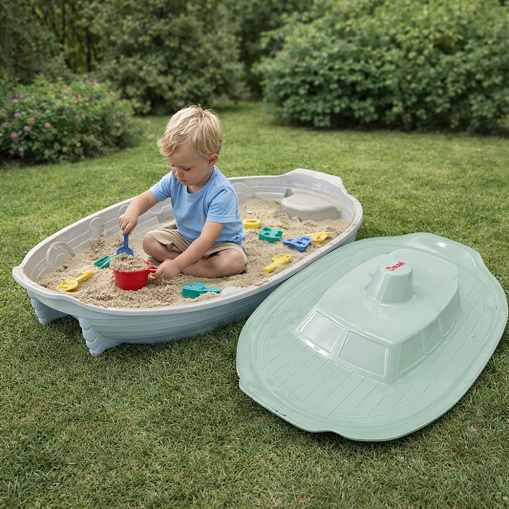 Форма корабля стимулює дитячу уяву, дозволяючи вигадувати різні ігрові сюжети. Компактні розміри дозволяють легко встановити пісочницю у дворі, саду або на дитячому майданчику.