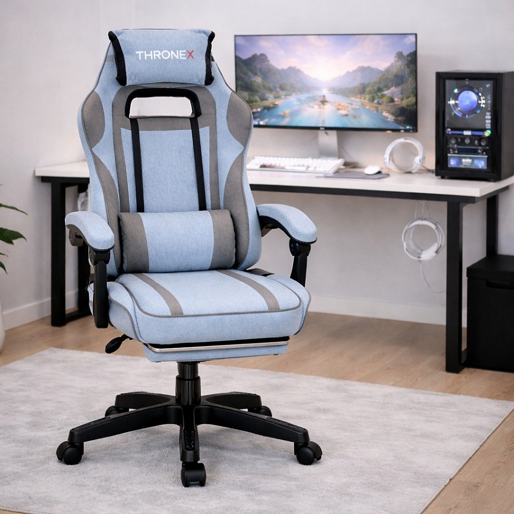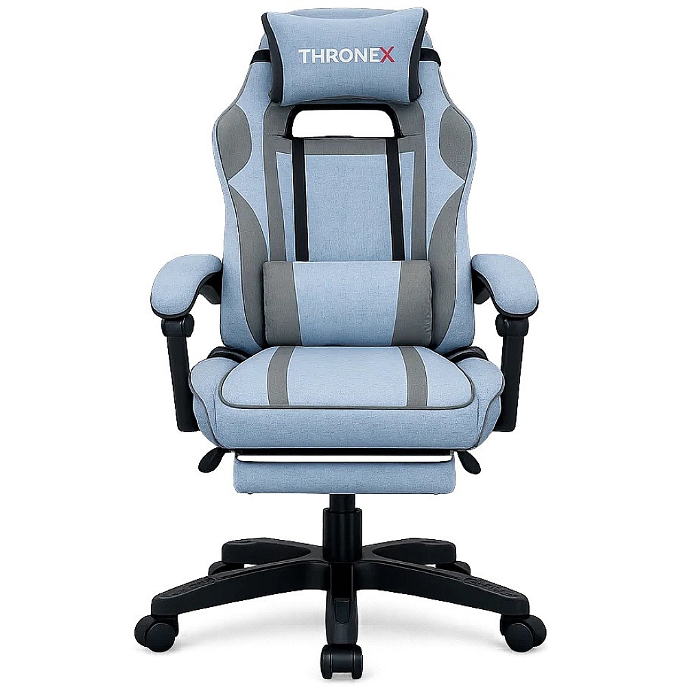 Дизайнерське геймерське крісло ThroneX з тканинною оббивкою у стильному блакитно-сірому кольорі — це комфортне та ергономічне рішення для роботи, навчання та тривалих ігрових сесій. Сучасне дизайнерське поєднання блакитного та сірого кольорів надає кріслу стильного та сучасного вигляду, що чудово підходить як для геймерського простору, так і для домашнього офісу.