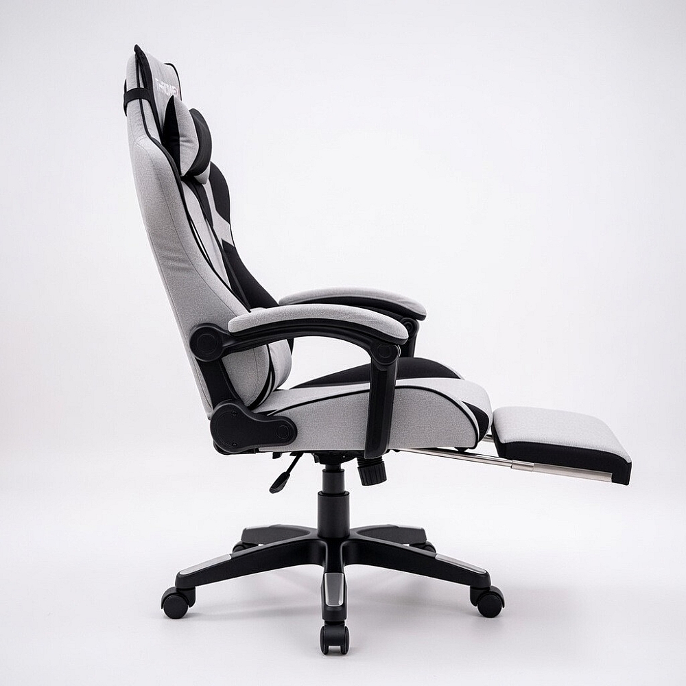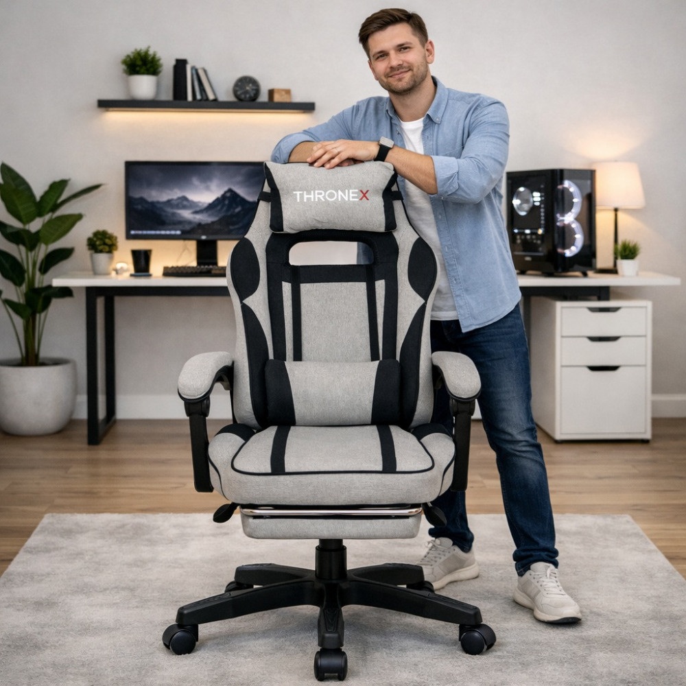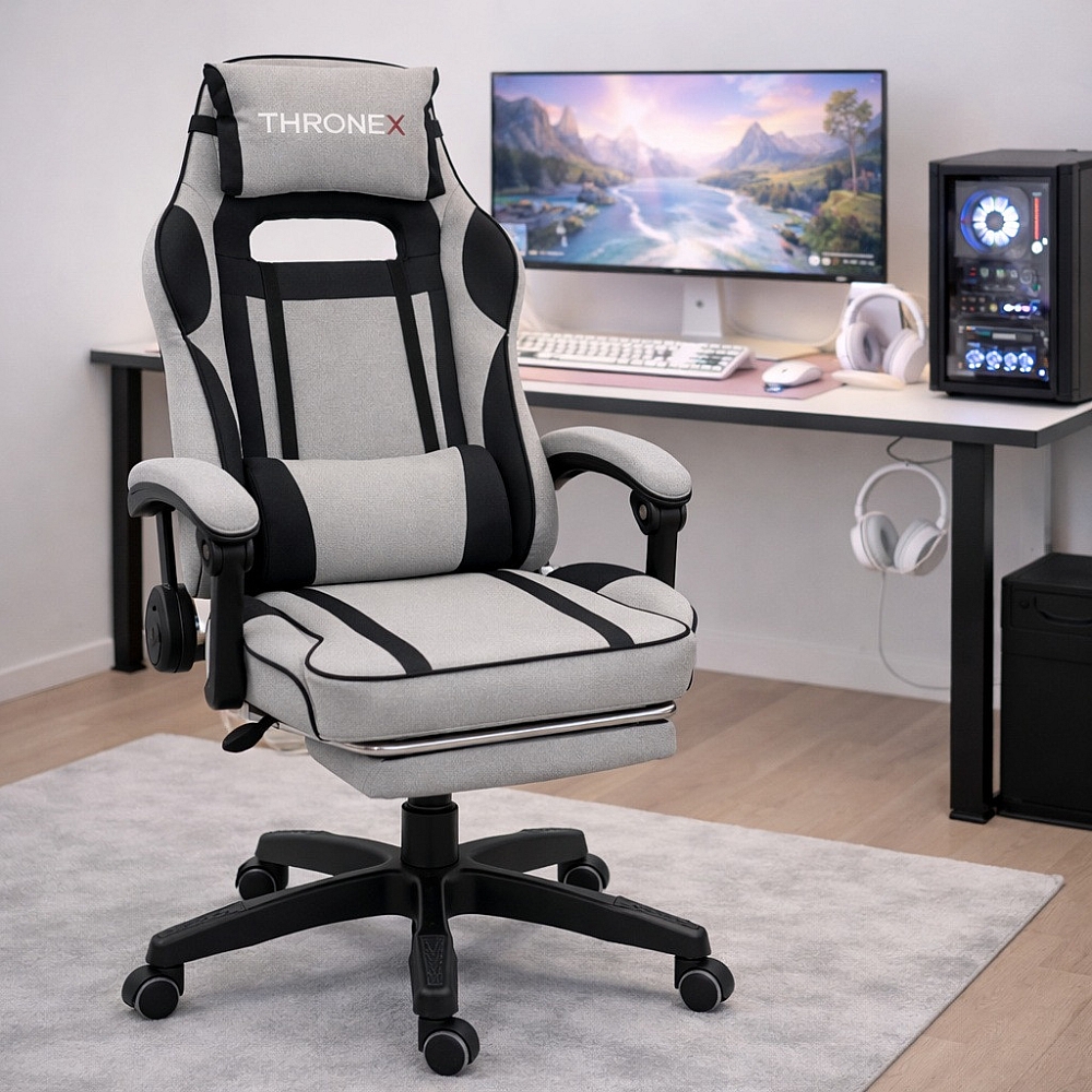 Дизайнерське геймерське крісло ThroneX з тканинною оббивкою у стильному сіро-чорному кольорі — це комфортне та ергономічне рішення для роботи, навчання та тривалих ігрових сесій. Сучасне дизайнерське поєднання сірого та чорного кольорів надає кріслу стильного вигляду та добре підходить як для геймерського простору, так і для домашнього офісу.