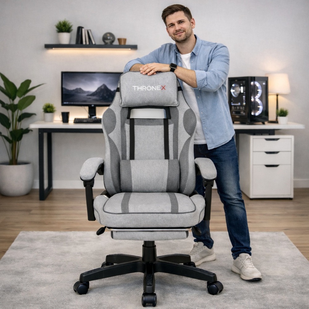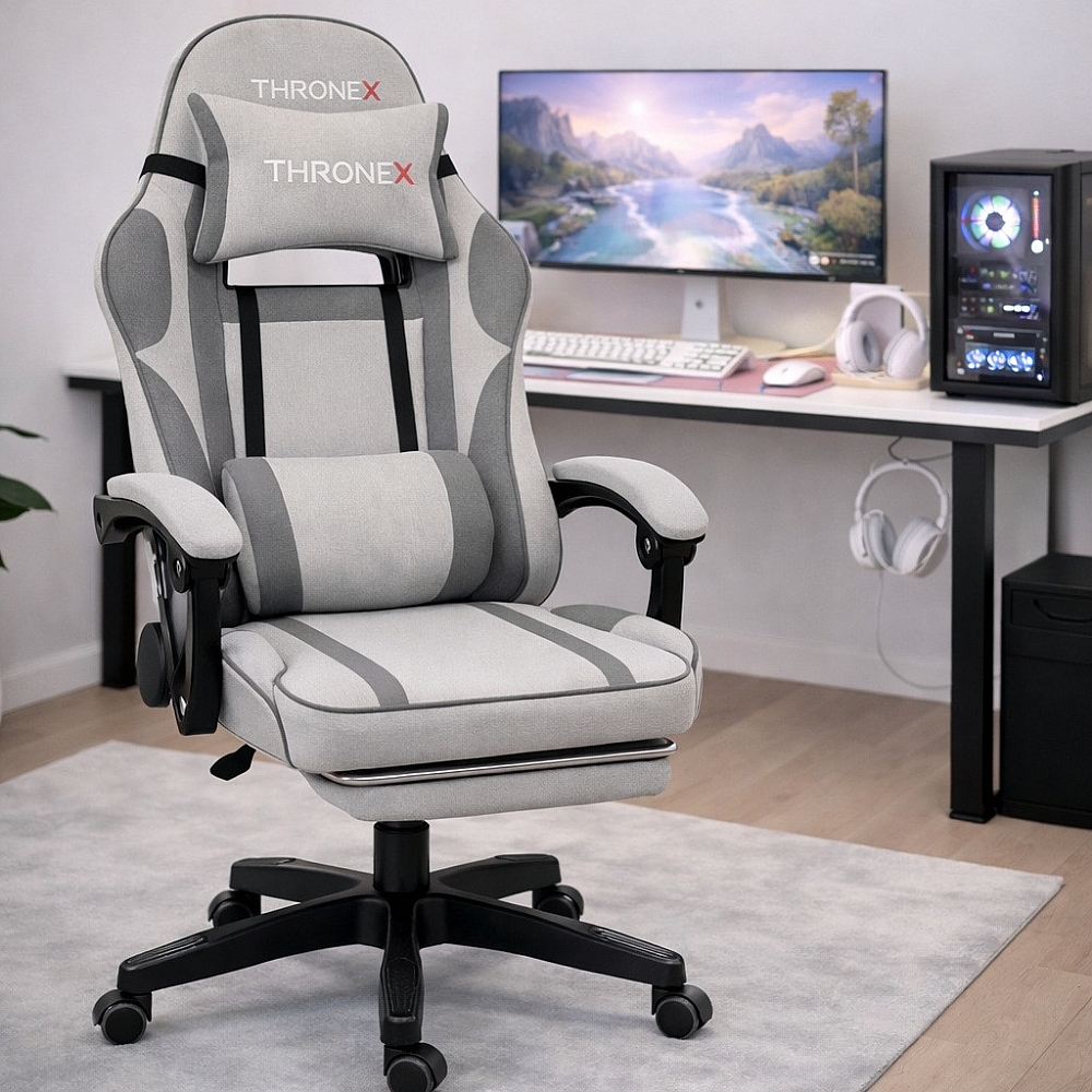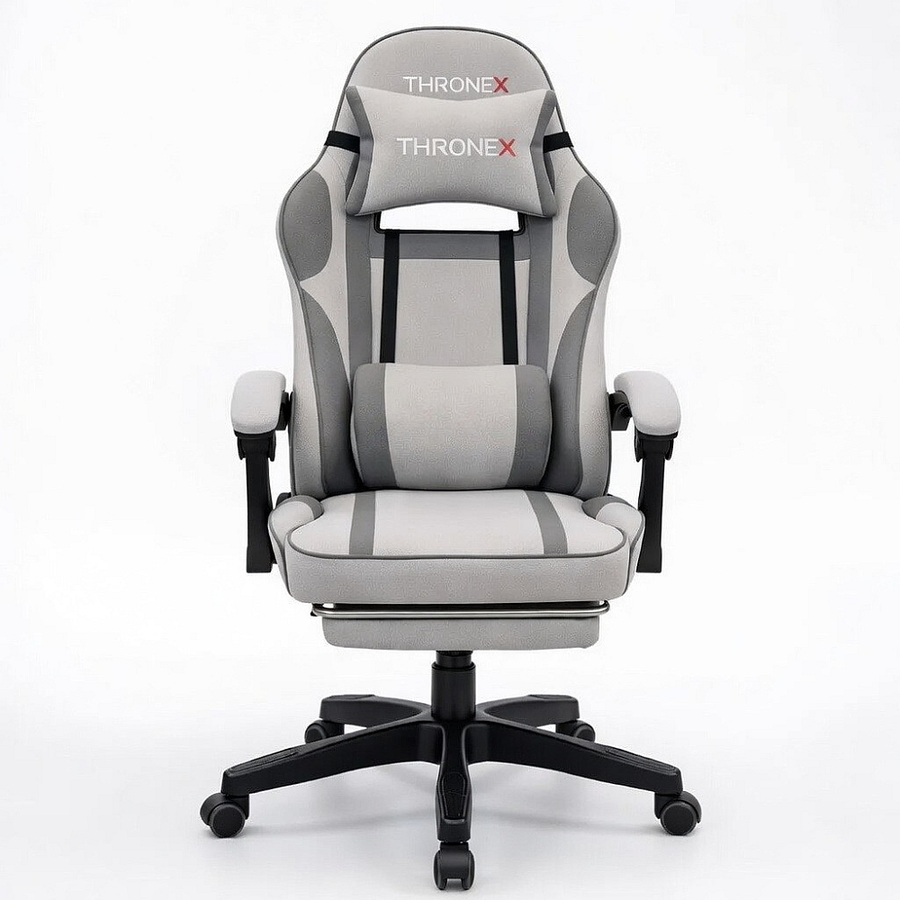Дизайнерське геймерське крісло ThroneX з тканинною оббивкою у стильному світло-сірому кольорі з графітовими вставками — це комфортне та ергономічне рішення для роботи, навчання та тривалих ігрових сесій. Сучасне дизайнерське поєднання світло-сірого та графітового кольорів надає кріслу стриманого та універсального вигляду, що гармонійно впишеться як у геймерський простір, так і в сучасний домашній офіс.