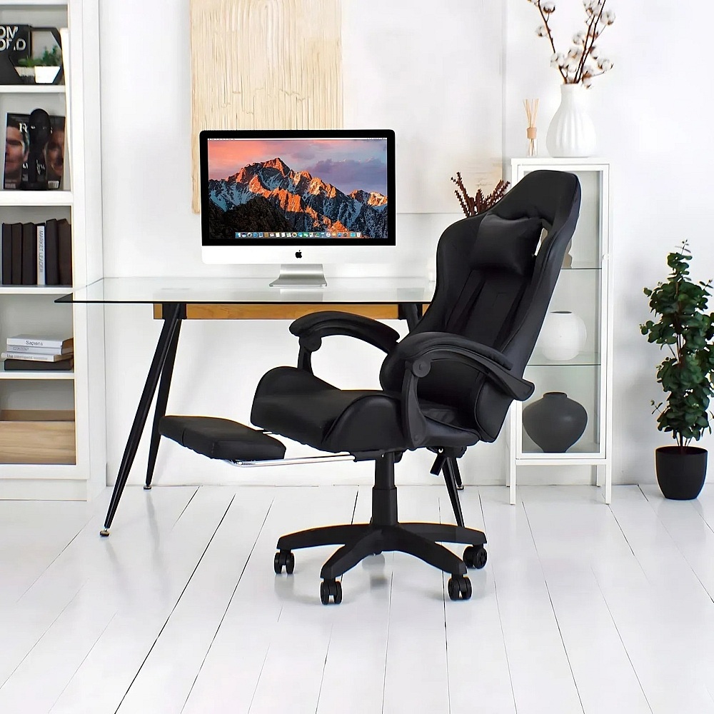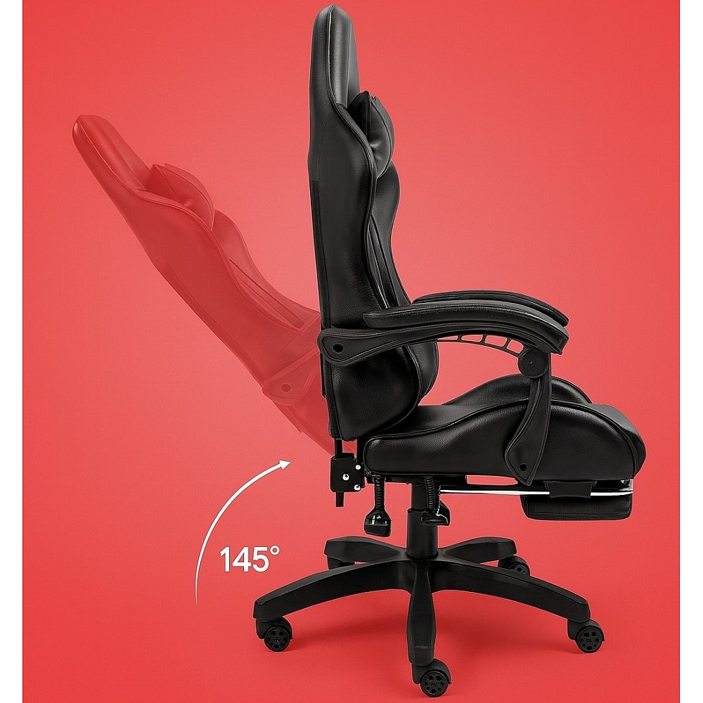 Геймерське крісло Gamery — зручне та ергономічне ігрове крісло для комп’ютера, створене для тривалих сесій гри, навчання та роботи. Міцний металевий каркас і газліфт 3 класу витримують до 150 кг, спинка регулюється до 145°, у комплекті дві подушки для шиї та попереку. М’які підлокітники, щільний наповнювач і оббивка з якісної екошкіри забезпечують комфорт і легкий догляд. Gamery органічно вписується як в ігрове місце, так і в домашній або офісний кабінет.