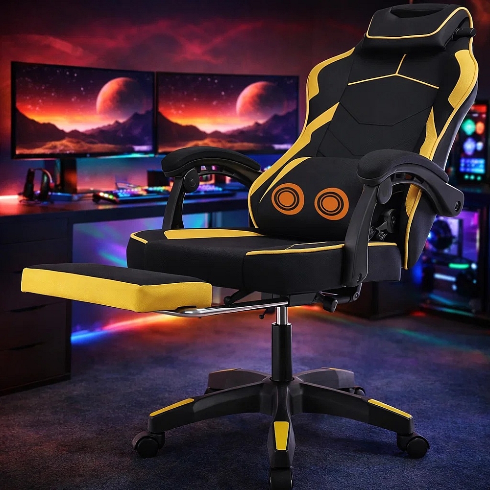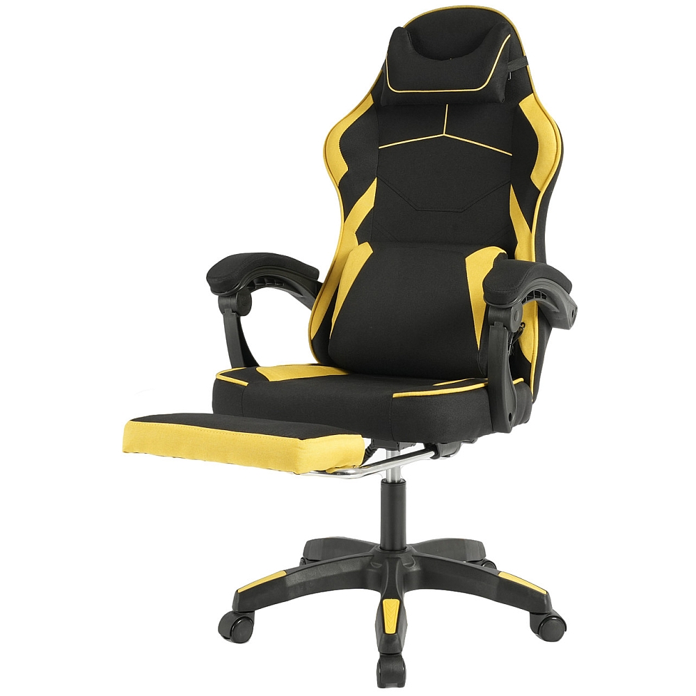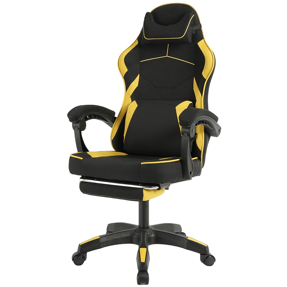 Ігрове крісло Vector KO48CZE з підніжкою та масажем, тканинне, Чорно-жовте