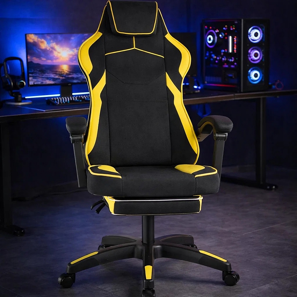 Геймерське крісло Vector KO48CZE (Green/Black) Тканинне з підніжкою чорно-жовте