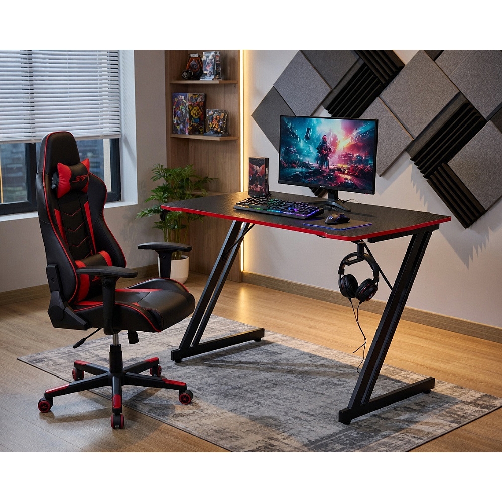 Основу конструкції становить надійна Z-подібна металева рама, яка забезпечує стабільність столу навіть під час активного використання. Завдяки продуманій конструкції стіл не хитається та впевнено витримує комп’ютерне обладнання, що особливо важливо для геймерів.
