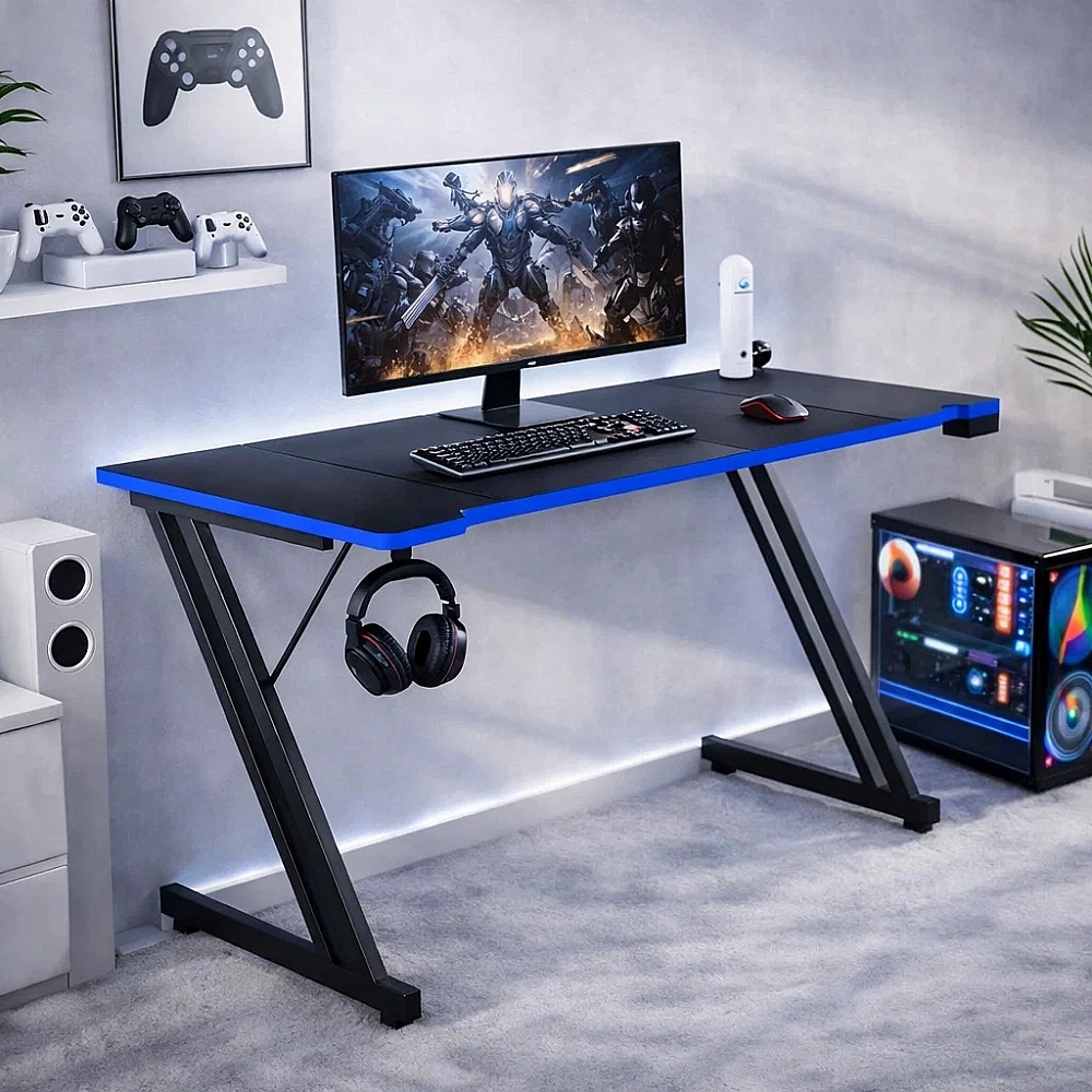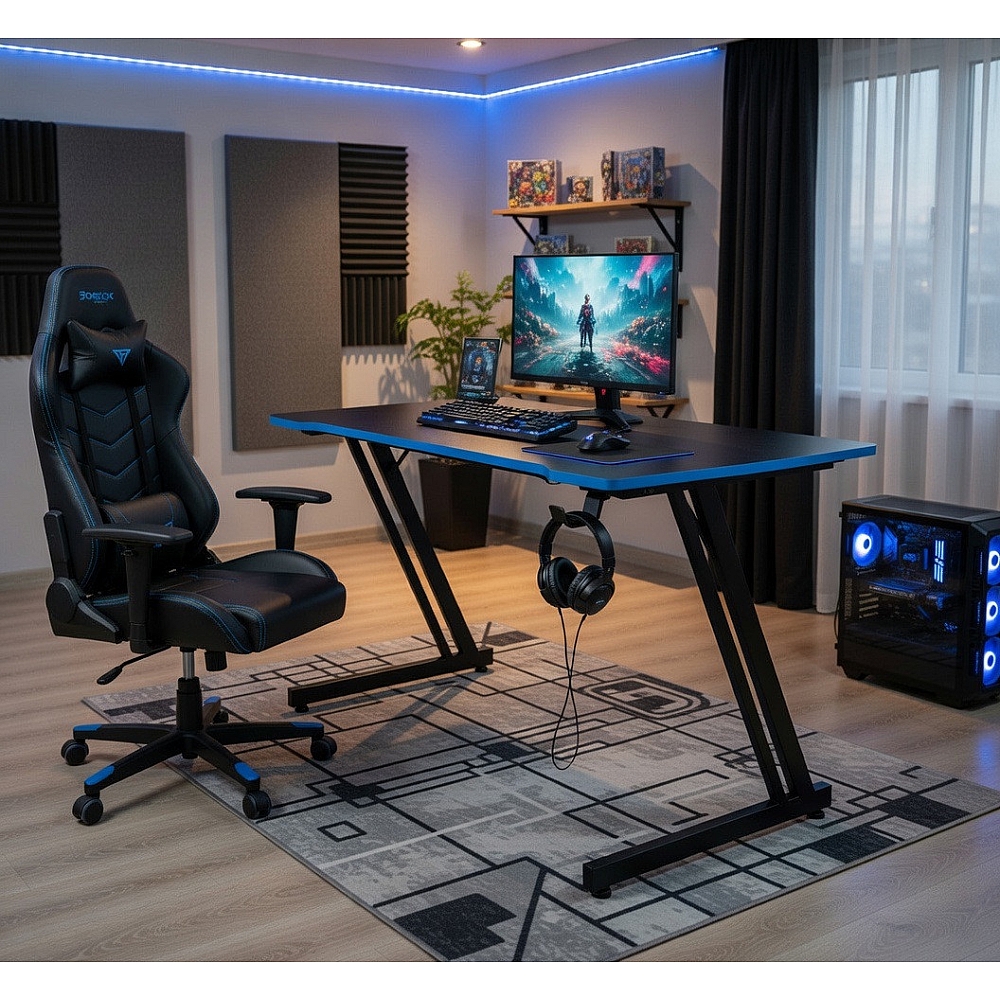 Модель має міцну Z-подібну металеву конструкцію, яка забезпечує стабільність та надійну підтримку навіть для важкого обладнання. Така основа гарантує стійкість столу під час активного використання, що особливо важливо для геймерів. Ергономічна висота столу відповідає стандартній посадці, дозволяючи комфортно проводити багато часу за комп’ютером без зайвого навантаження.