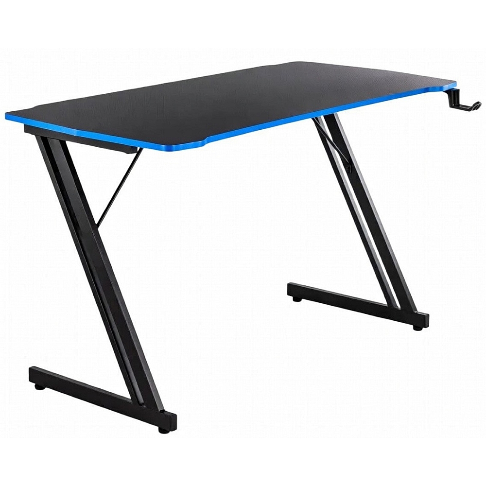 Ігровий стіл оснащений просторою робочою поверхнею з карбоновим покриттям, яка забезпечує достатньо місця для монітора, клавіатури, миші та інших аксесуарів. Міцна Z-подібна металева конструкція гарантує високу стабільність і надійну підтримку обладнання навіть під час активного використання. Стіл також має зручні геймерські аксесуари — підстаканник для напоїв та гачок для навушників, що допомагають підтримувати порядок на робочому місці.