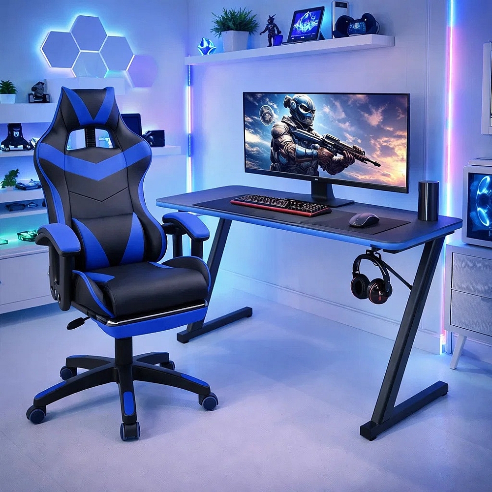 - Комплект: ігровий стіл та геймерське крісло
