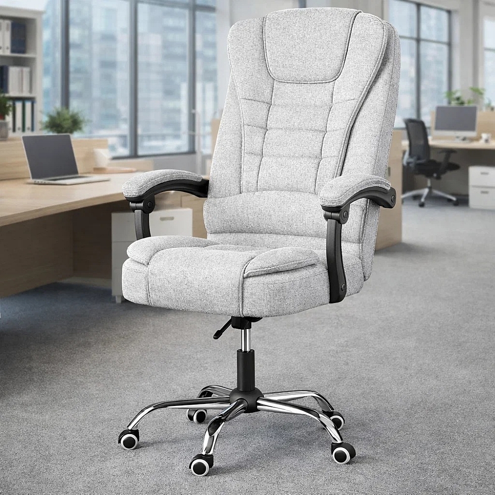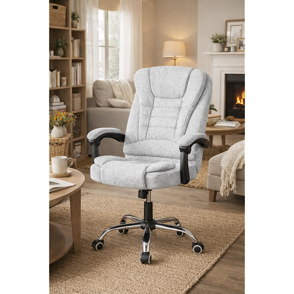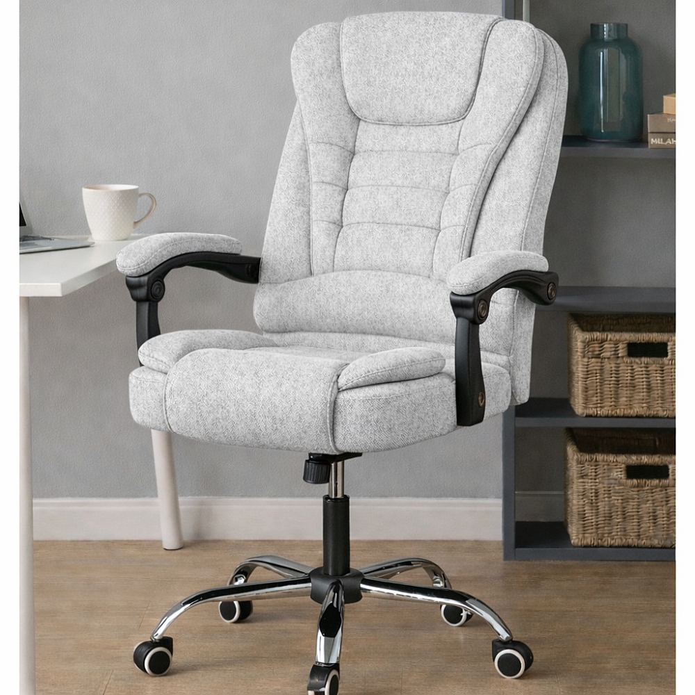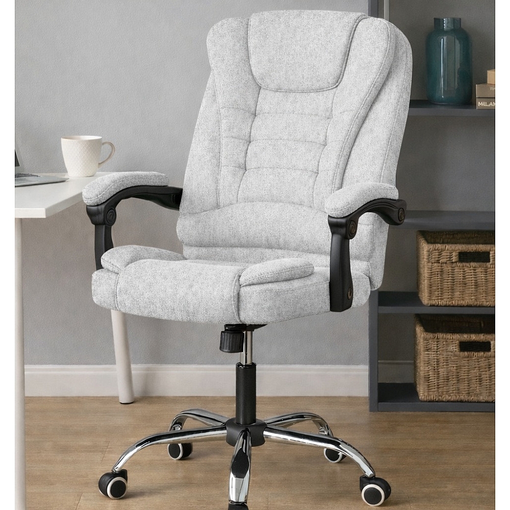 Офісне крісло BOSS KO22 — це вдале поєднання стриманого дизайну, комфорту та надійності для щоденної роботи. М’яка тканинна оббивка світло-сірого кольору виглядає солідно та легко вписується в будь-який офісний або домашній інтер’єр.