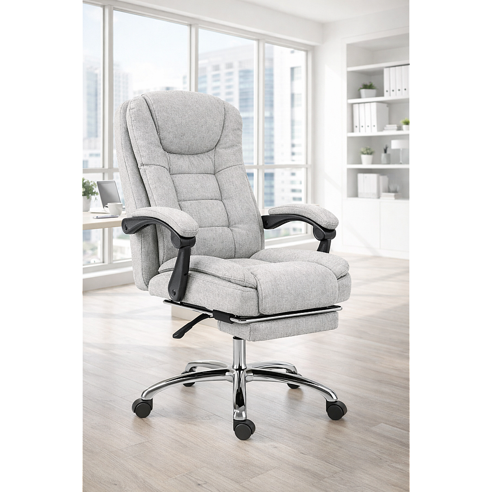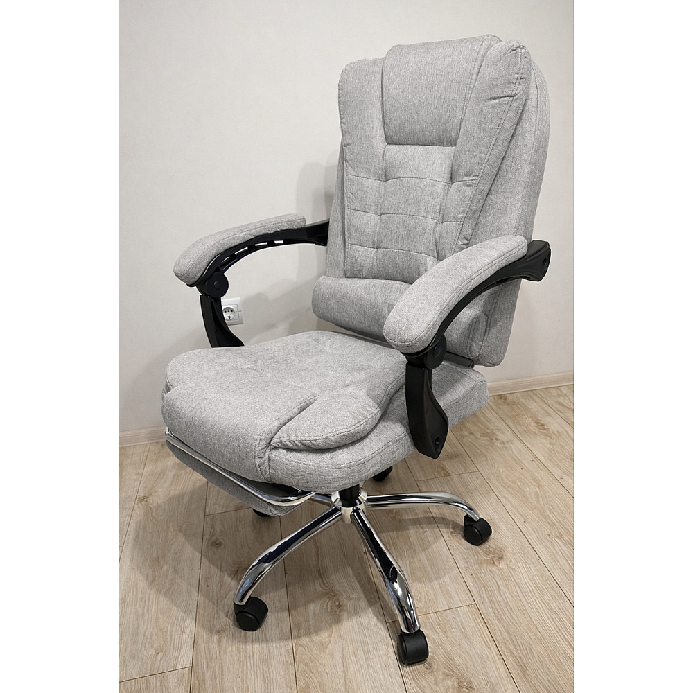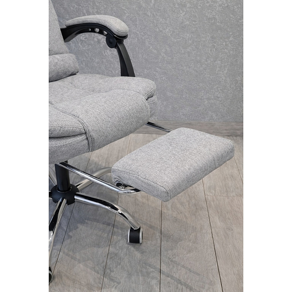 Офісне крісло BOSS KO22 VIP з підставкою для ніг, тканинне, світло-сіре, до 130 кг