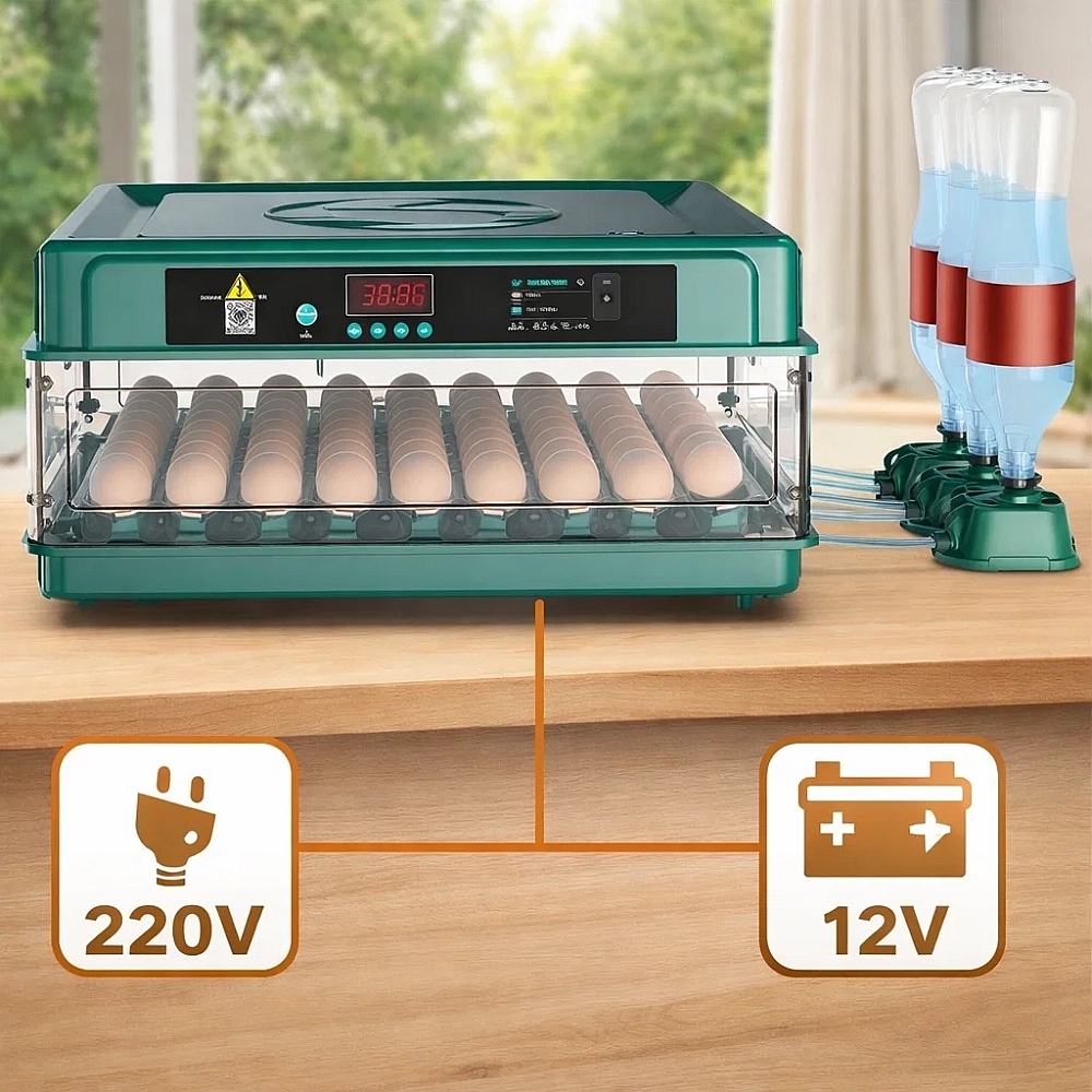 Завдяки можливості роботи від акумулятора інкубатор не зупиняється при відключенні світла, зберігаючи стабільну температуру, вологість і режим перевертання яєць. Це критично важливо для правильного розвитку ембріонів і значно підвищує відсоток виводу пташенят.
