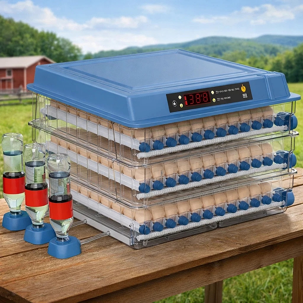 Модель підтримує подвійне живлення — від мережі 220 В та від акумулятора 12 В. У разі відключення електроенергії інкубатор може працювати від автомобільного акумулятора, зберігаючи стабільну температуру та безперервність інкубаційного процесу.