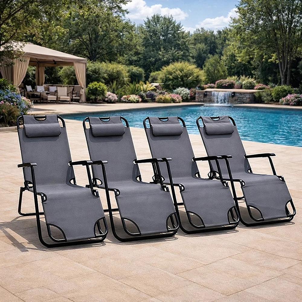 Комплект крісел-шезлонгів 4 шт Axeon — ідеальне рішення для повного розслаблення та комфортного відпочинку на терасі, у саду або біля басейну. Ергономічна конструкція шезлонга забезпечує зручну підтримку тіла, дозволяючи максимально насолоджуватися відпочинком на свіжому повітрі. Такий шезлонг чудово підходить як для використання вдома, на дачі або для облаштування затишної зони відпочинку.