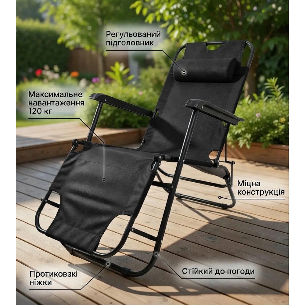 Крісло-шезлонг Axeon — ідеальне рішення для повного розслаблення та комфортного відпочинку на терасі, у саду або біля басейну. Ергономічна конструкція шезлонга забезпечує зручну підтримку тіла, дозволяючи максимально насолоджуватися відпочинком на свіжому повітрі. Такий шезлонг чудово підходить як для використання вдома, на дачі або для облаштування затишної зони відпочинку.
