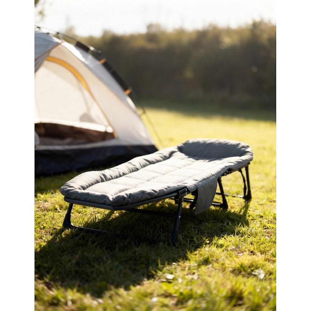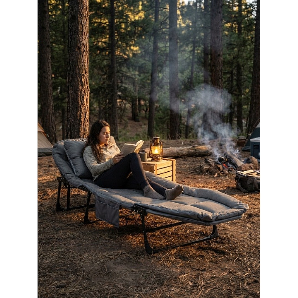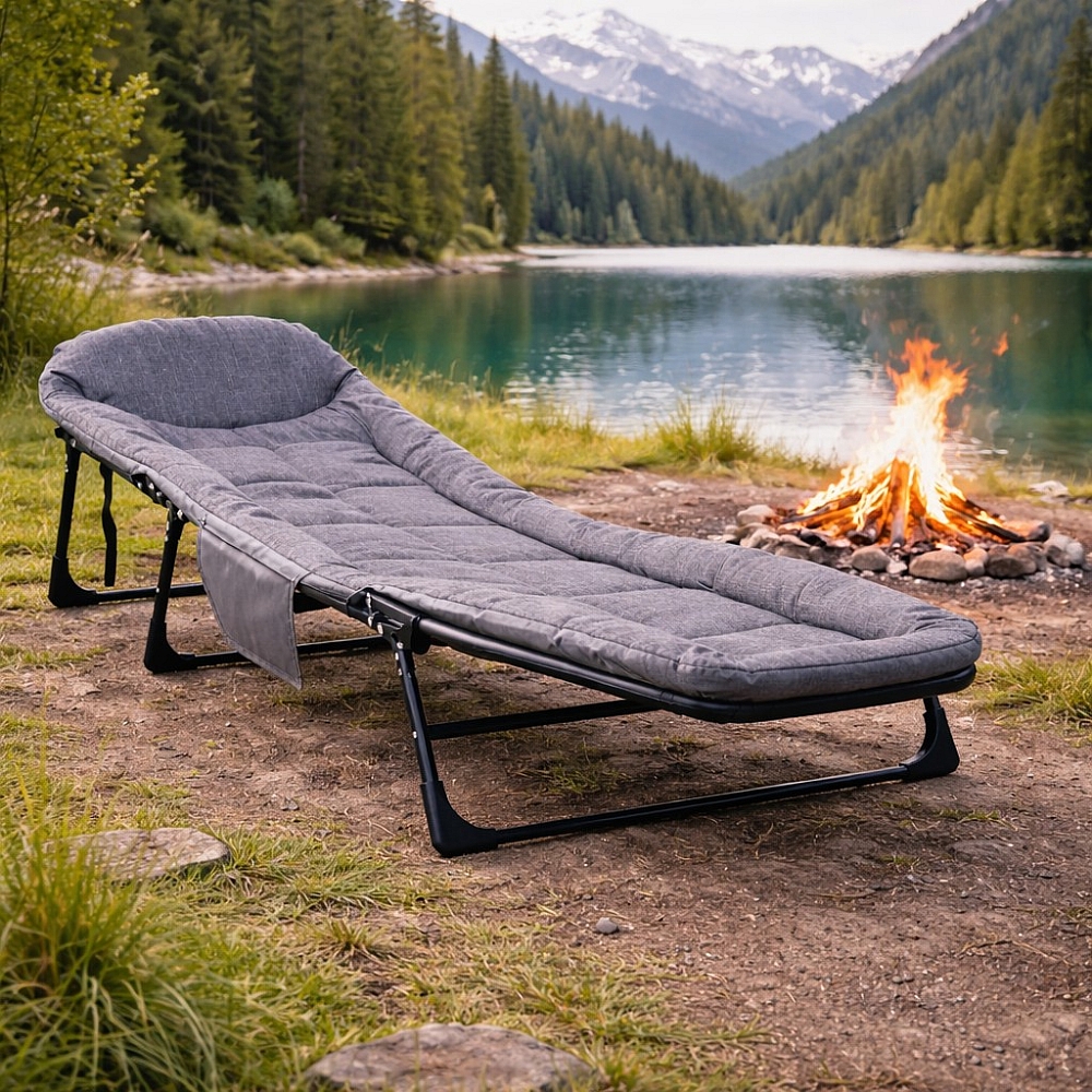 Туристичне ліжко-шезлонг розкладне з матрацом Anro, сірий — це практичне та зручне рішення для відпочинку вдома, на дачі або під час подорожей. Модель поєднує компактність, легкість і комфорт, що робить її ідеальним варіантом для кемпінгу, релаксу на природі або як додаткове спальне місце.