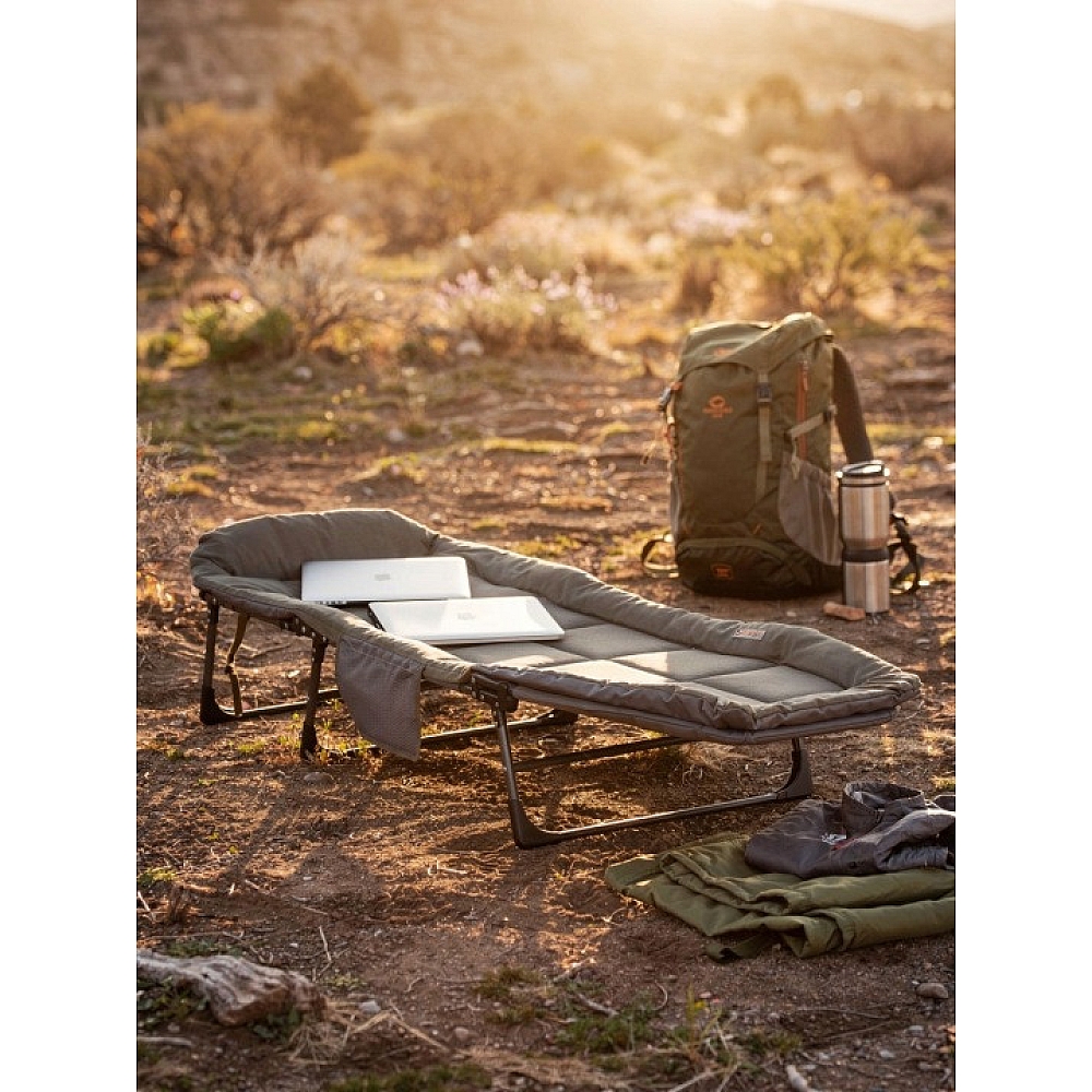 Міцний металевий каркас забезпечує надійність та стійкість конструкції, а синтетичне сидіння добре пропускає повітря, не боїться вологи та легко очищується. У комплекті передбачений матрац, який підвищує комфорт під час відпочинку.