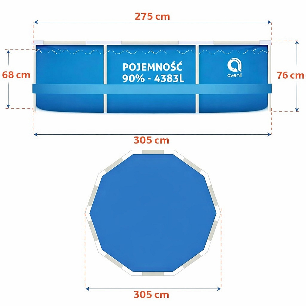 Каркасний круглий басейн Avenli 17798EU 305×76 см — це практичне рішення для літнього відпочинку на подвір’ї, дачі або в саду. Завдяки простій та надійній конструкції басейн швидко встановлюється та дозволяє насолоджуватися прохолодною водою у спекотні дні.