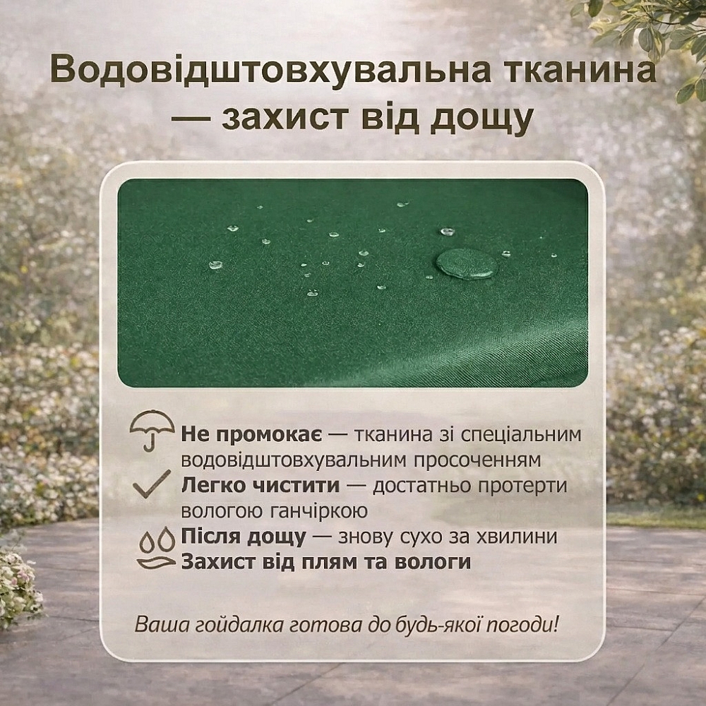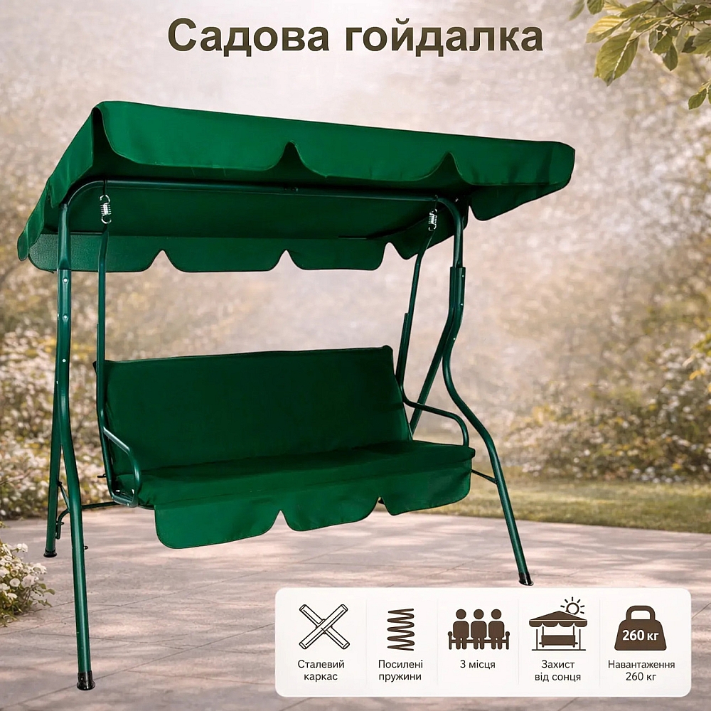 Садова гойдалка тримісна — це сучасне та стильне рішення для комфортного відпочинку у саду, на терасі або подвір’ї. Завдяки продуманому дизайну модель поєднує естетику, зручність та практичність, що робить її чудовим вибором для сімейного відпочинку на свіжому повітрі.