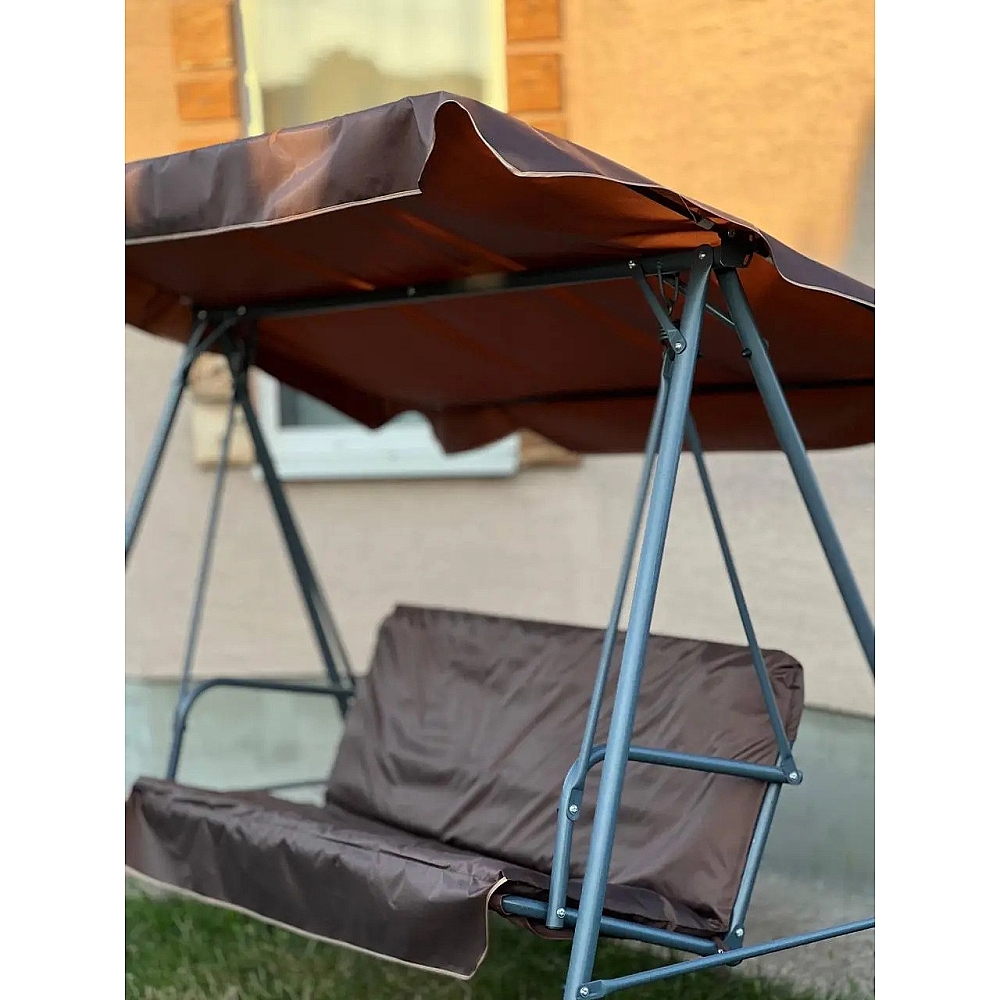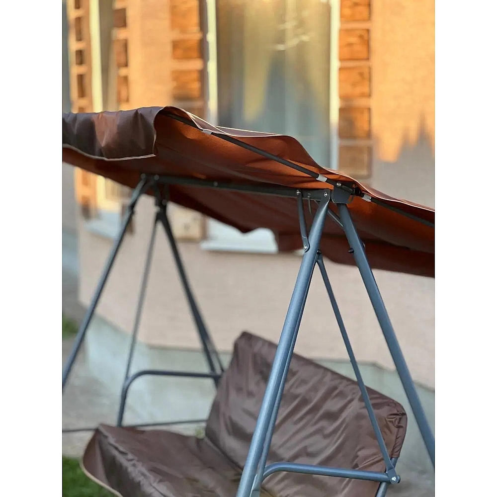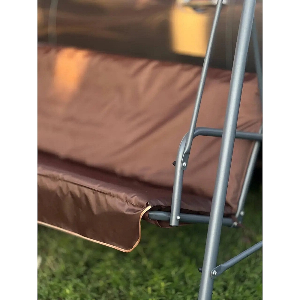 Садова гойдалка 3-місна Comfort Soft коричнева, з матрацом, навісом, посилена до 260 кг, для саду та двору