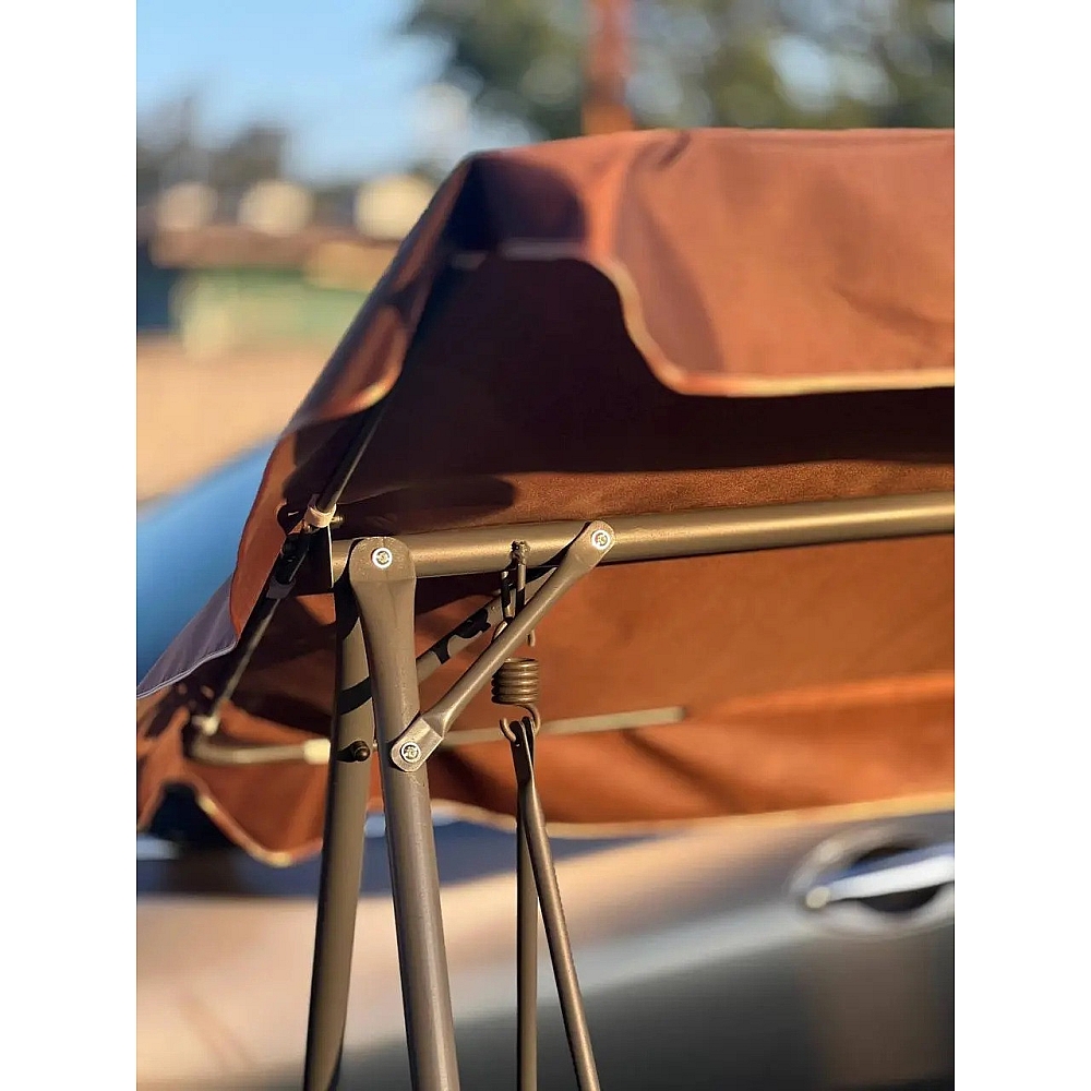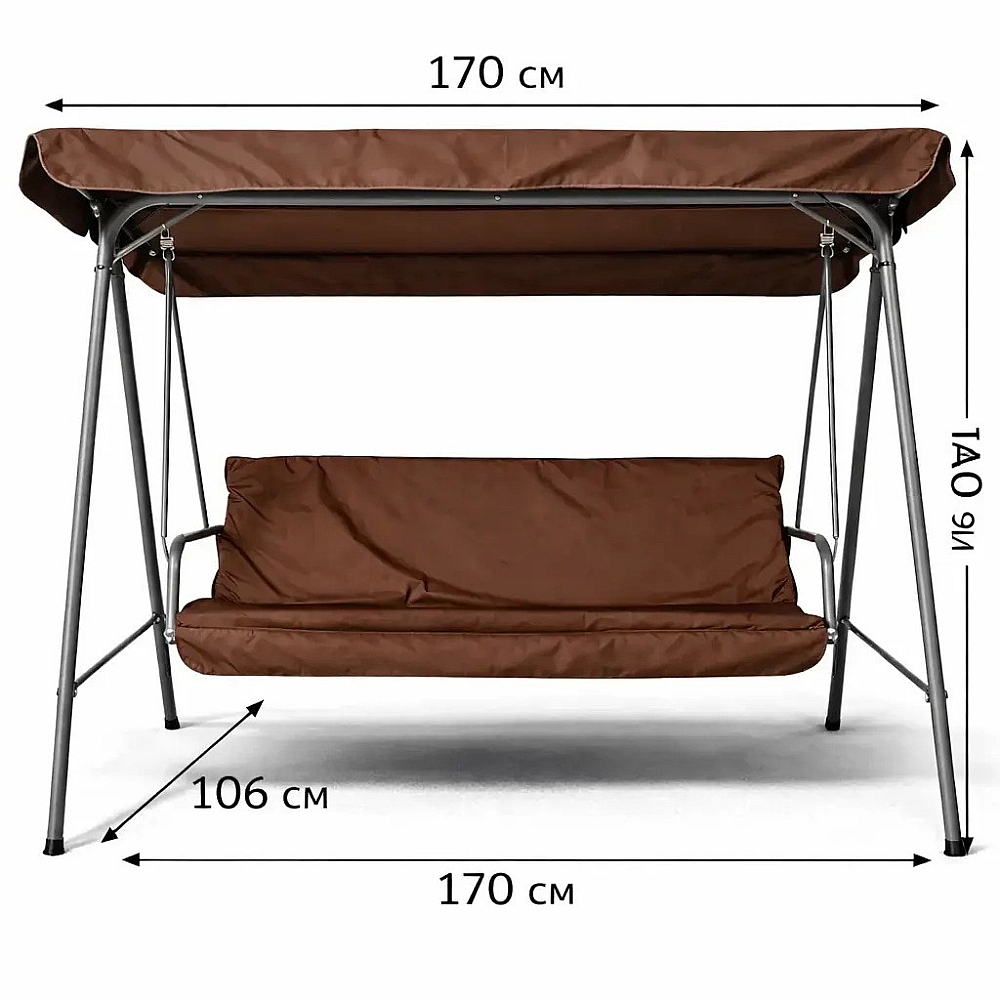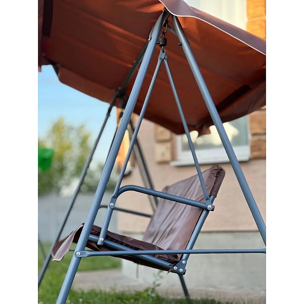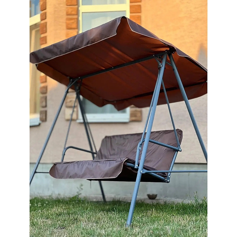 Садова гойдалка 3-місна Comfort Soft коричнева, з матрацом, навісом, посилена до 260 кг, для саду та двору