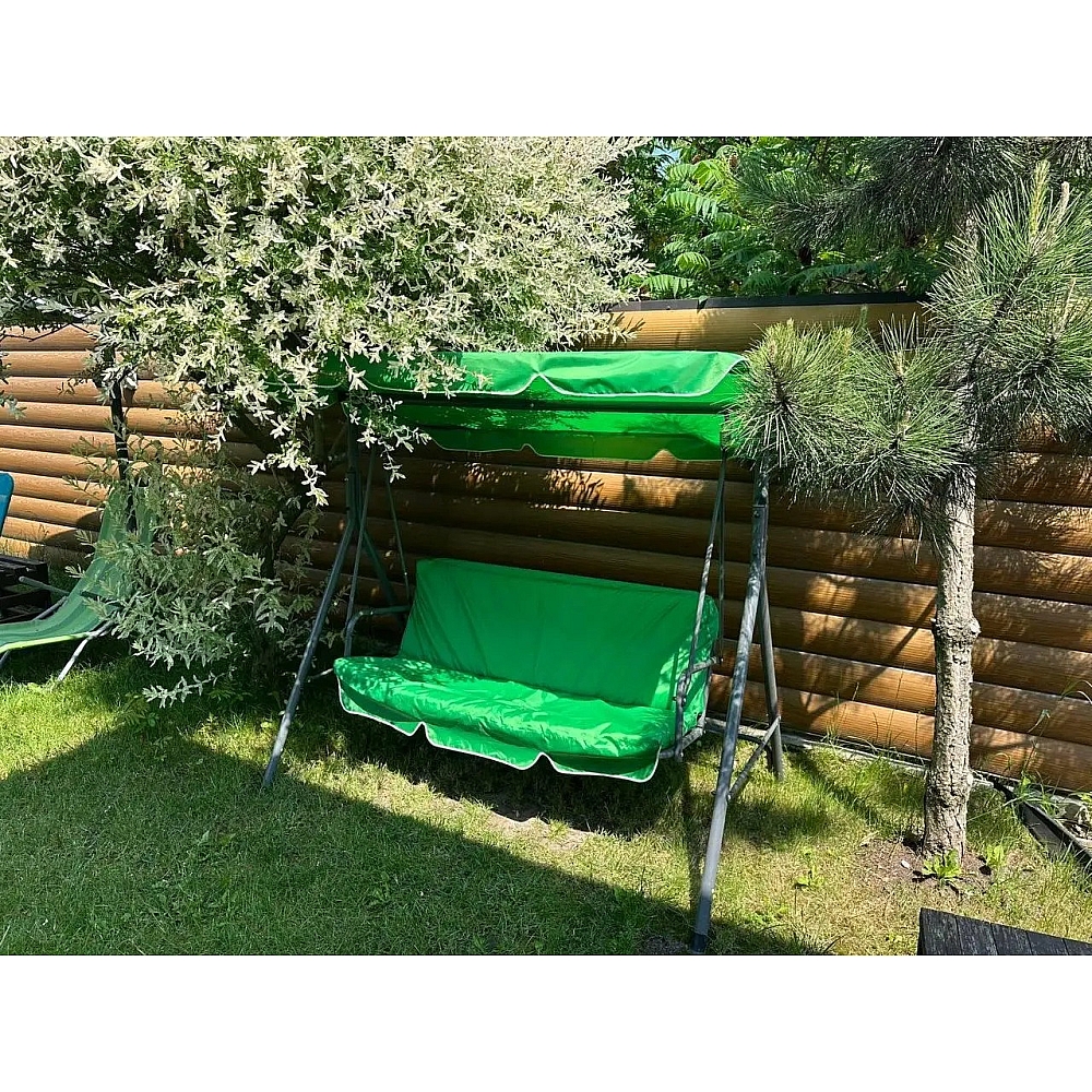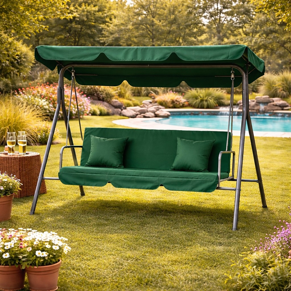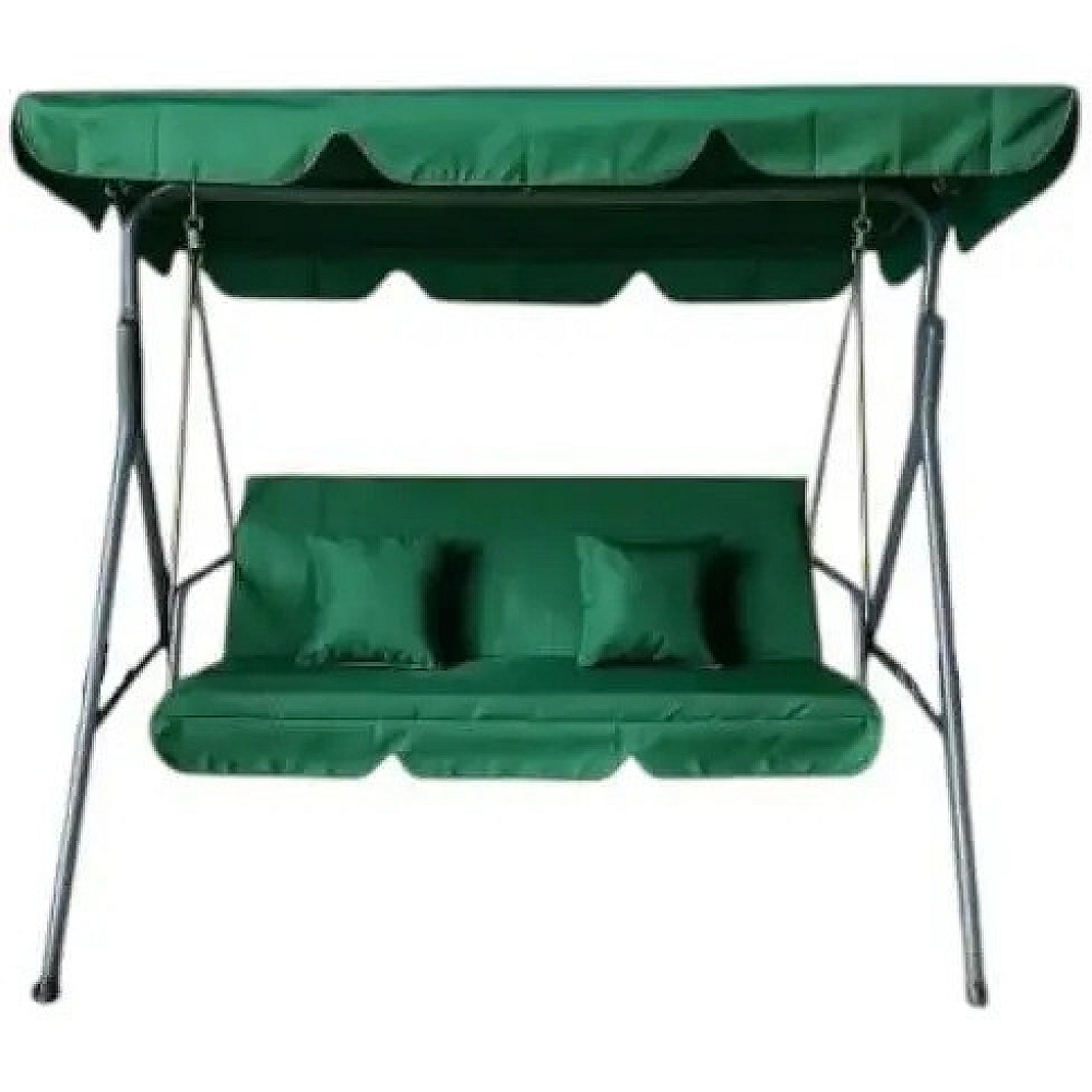 Садова гойдалка Comfort Lux 3-місна зелена з матрацом і навісом, 2 подушки в комплекті, до 260 кг, для дачі, саду та тераси