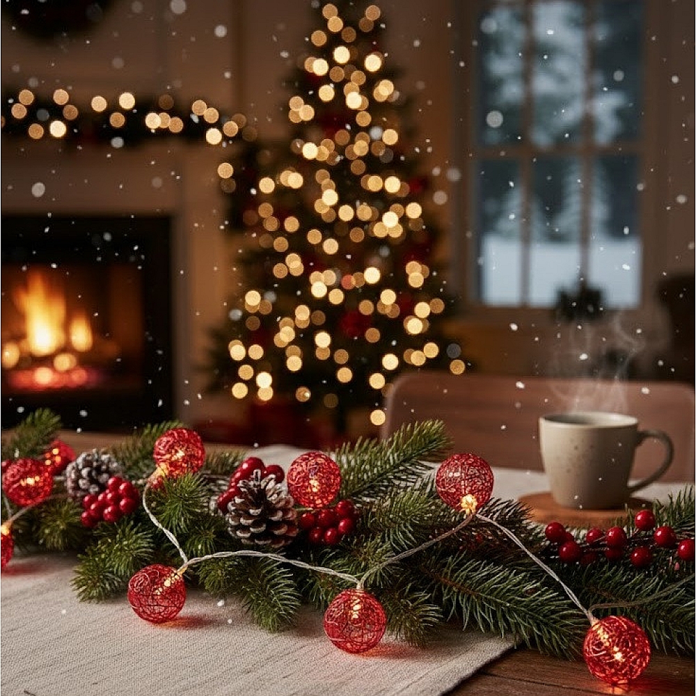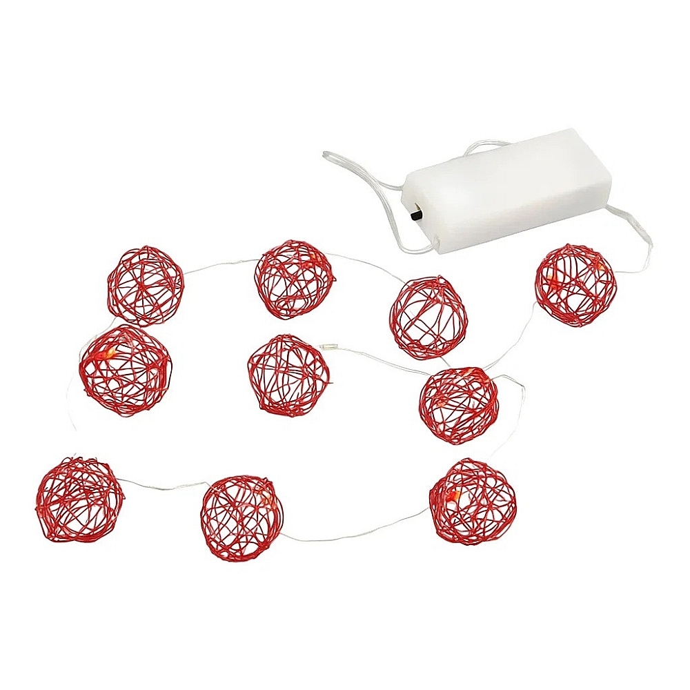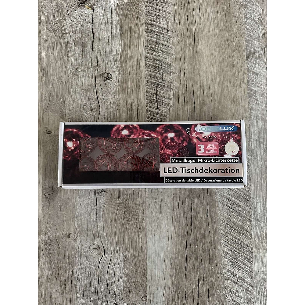 Світлодіодна гірлянда Oecolux Metallkugel Mikro-Lichterkette — це елегантна настільна декорація з металевими кулями насиченого червоного кольору. Вона створює атмосферу тепла й свята, відмінно підходить для прикрашання столу, каміну, полиць або святкових композицій. Завдяки компактним розмірам і живленню від батарей її можна розмістити будь-де, не використовуючи розетку.