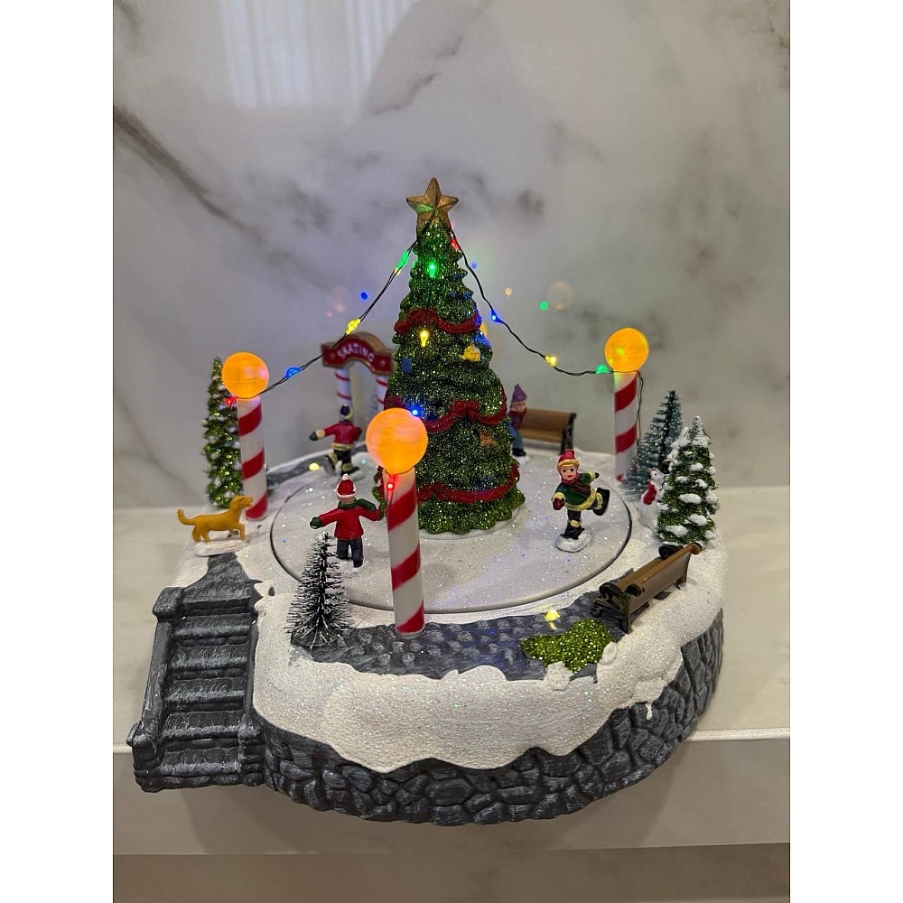 Ефектна різдвяна карусель LightZone виконана у вигляді зимової сцени з центральною ялинкою, фігурками та яскравими декоративними деталями. Композиція оживає завдяки обертовим елементам, кольоровому освітленню та святковим мелодіям.