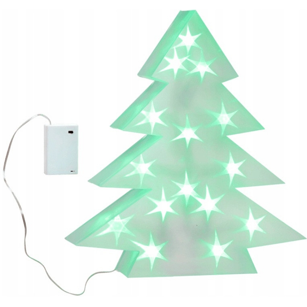 Завдяки 15 LED-лампочкам зеленого кольору, які світяться крізь прозору поверхню у формі маленьких зірок, декорація виглядає елегантно та ніжно.