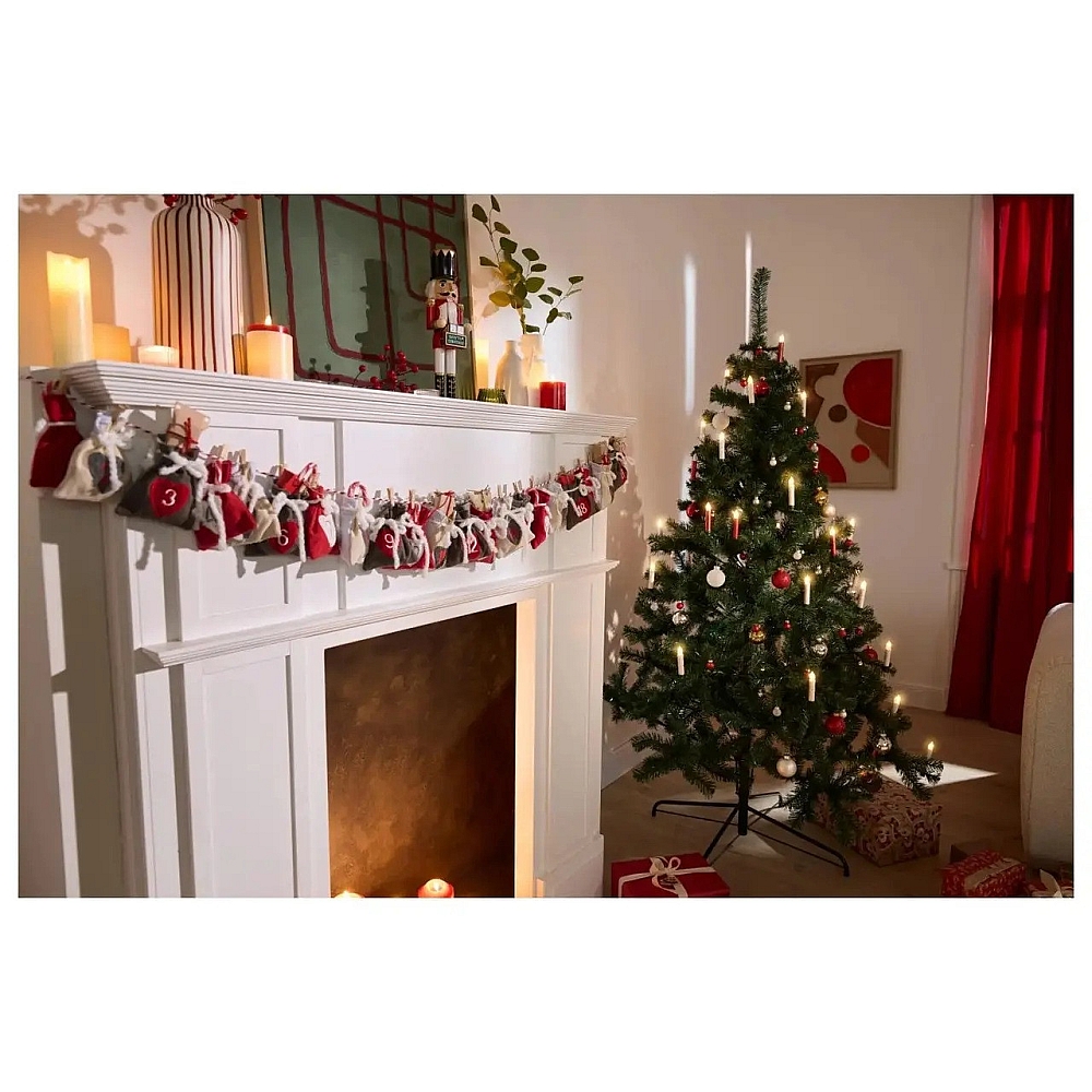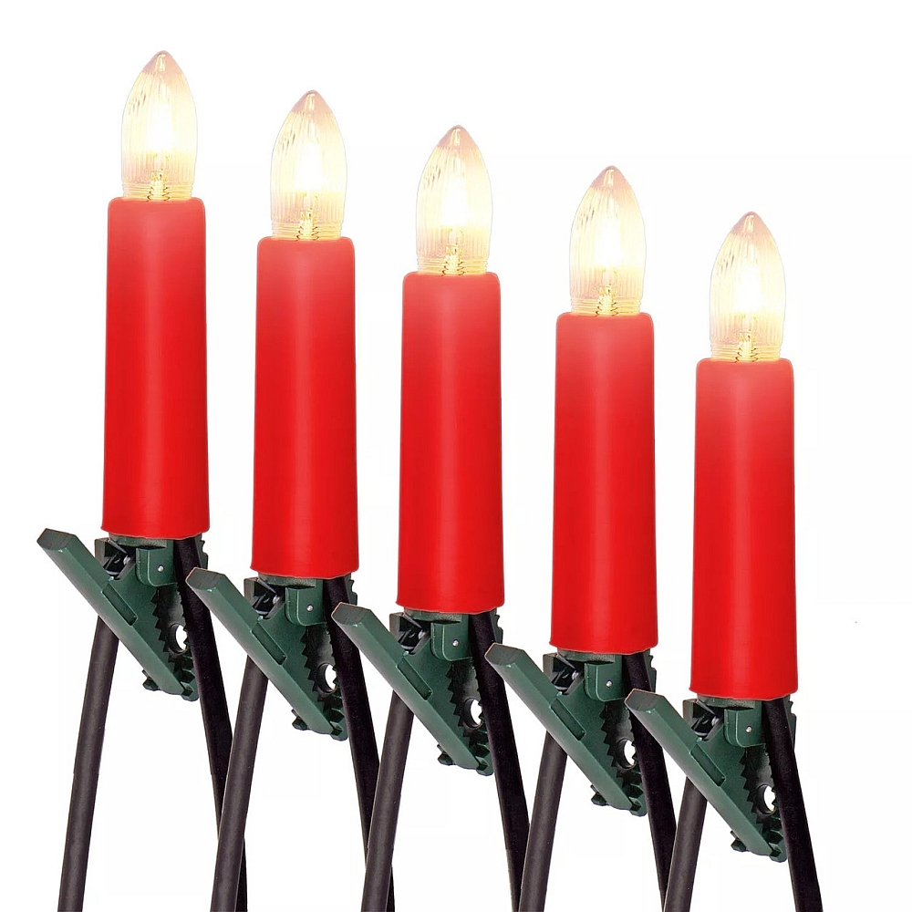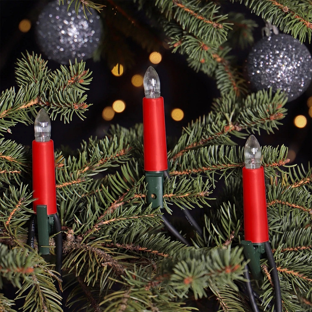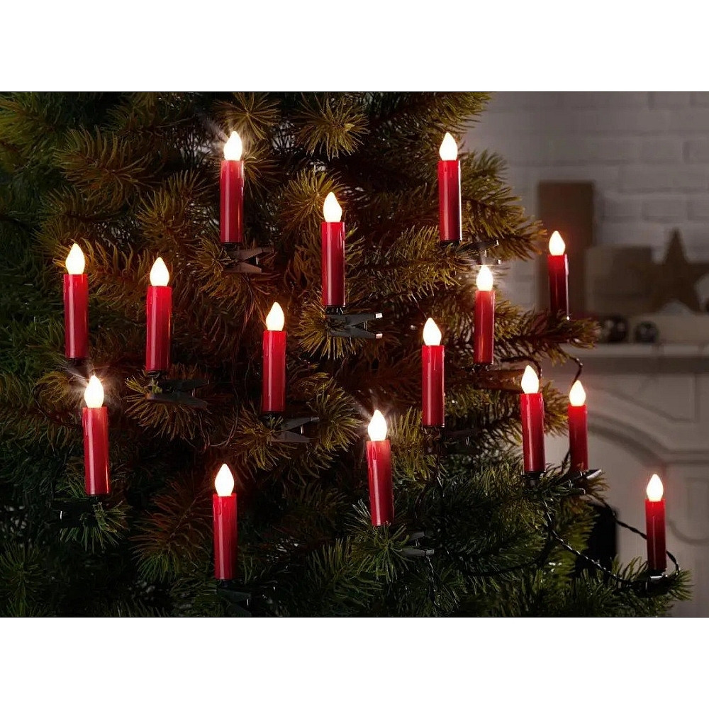 Ця гирлянда-світильник — комплект із 20 світлодіодних свічок з червоними корпусами і теплого білого свечіння. Призначена для внутрішнього й зовнішнього використання як прикраса рождественської ялинки чи святкової композиції.