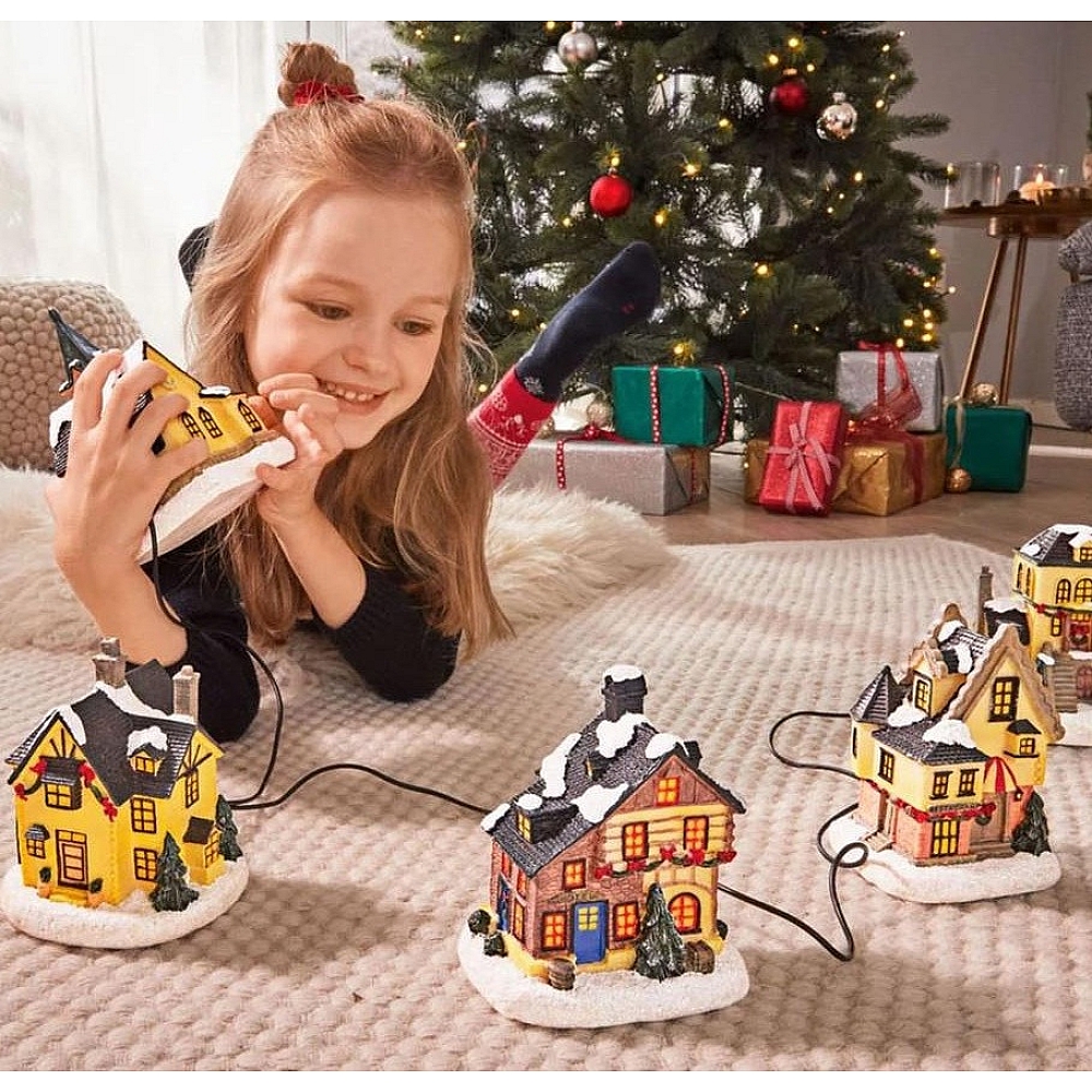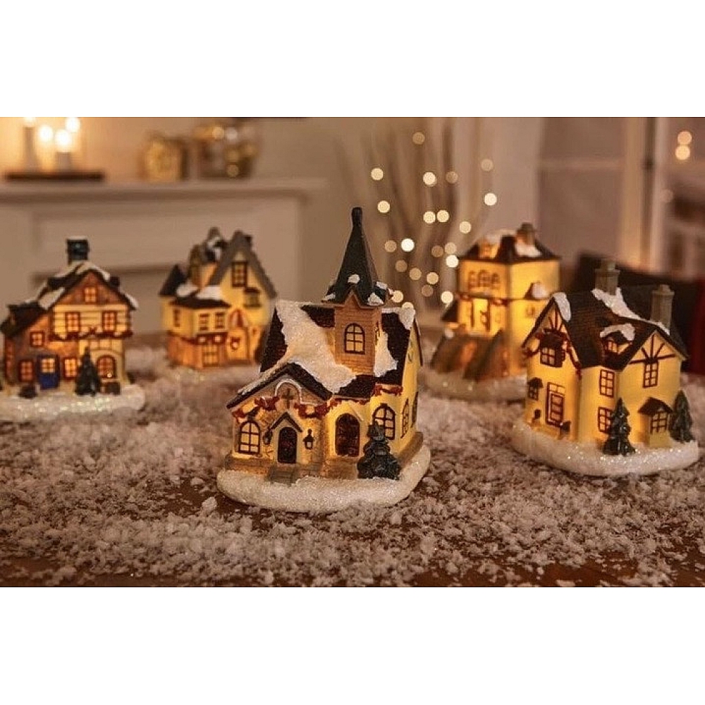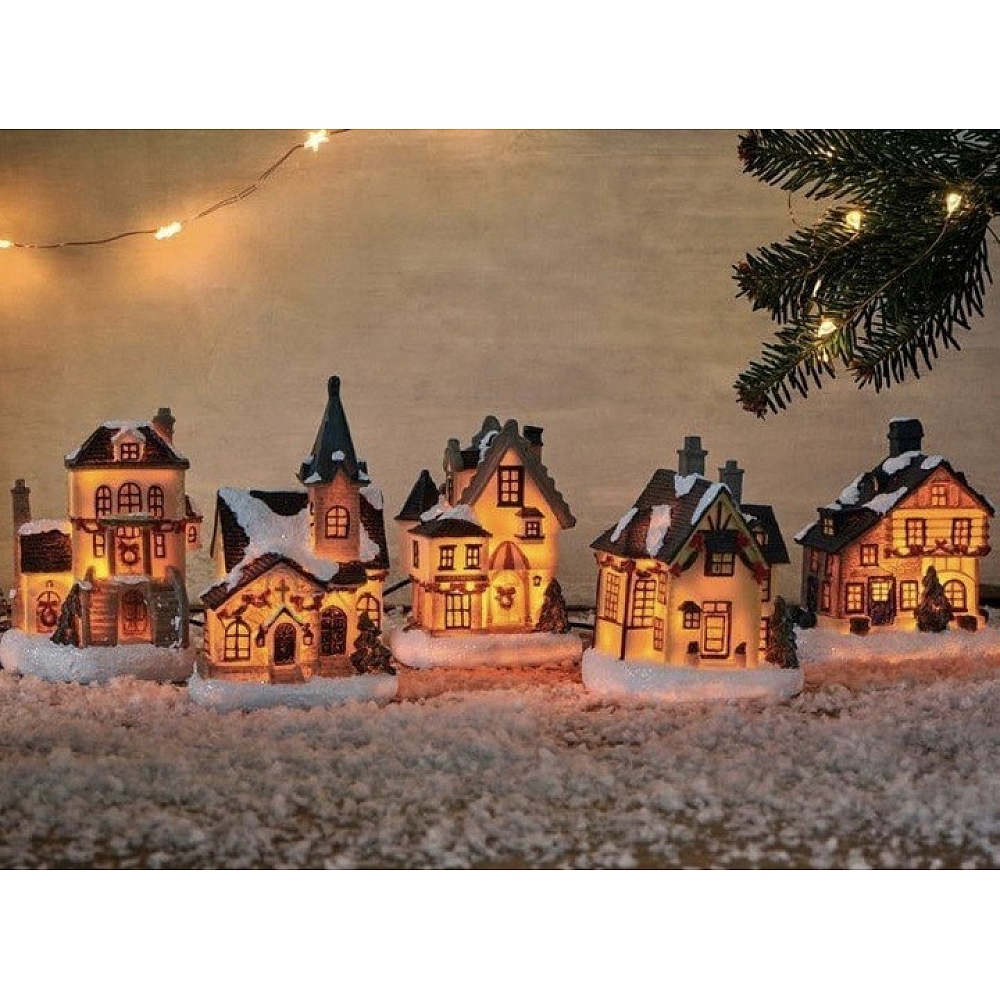 Набір із 5 декоративних LED-будиночків Livarno Home створений, щоб наповнити простір святковим світлом і затишком. Кожен будиночок підсвічується внутрішньо, утворюючи теплу атмосферу зимових вечорів.