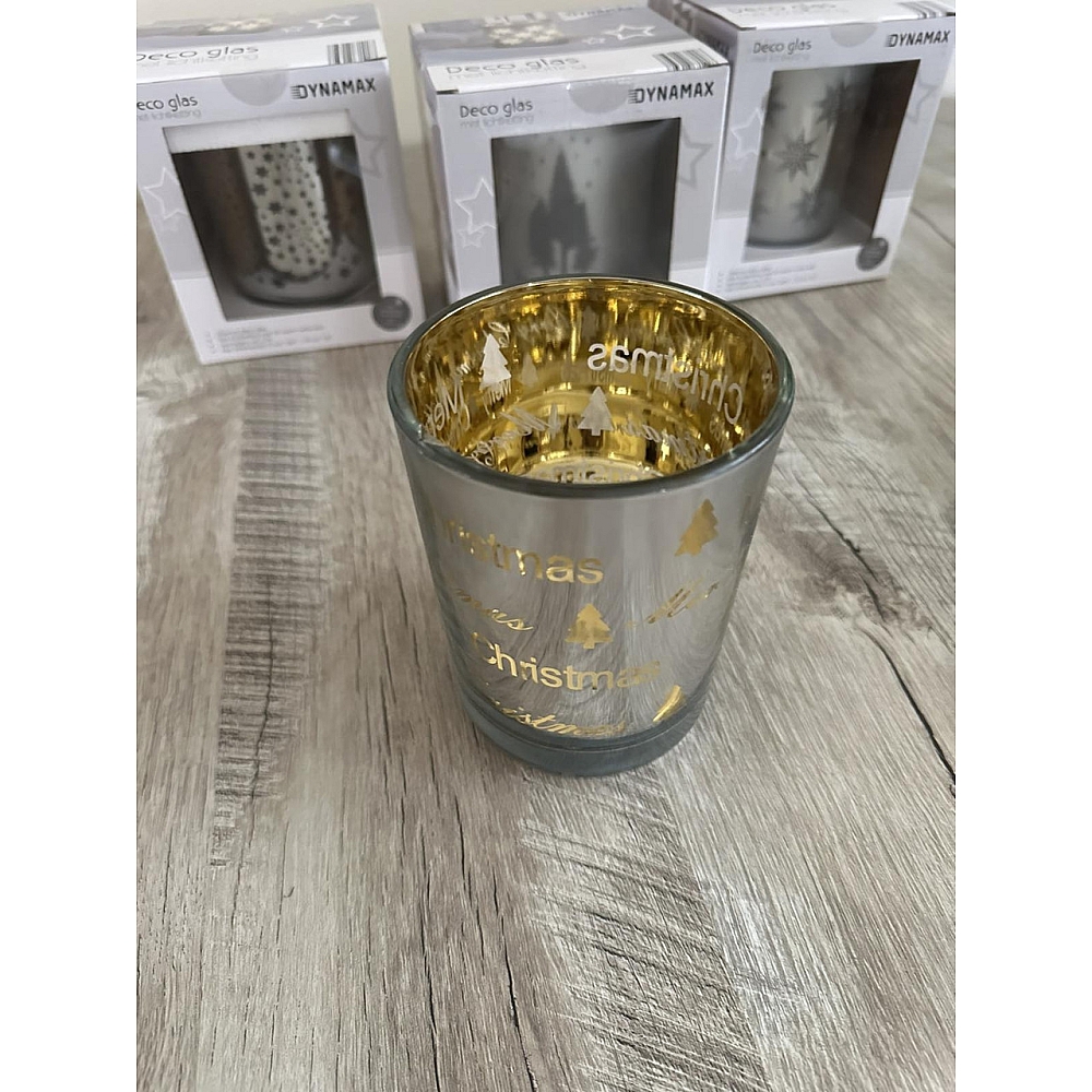 Світлодіодна декорація DYNAMAX Deco Glas — стильна cклянка з вбудованою гірляндою з 50 теплих білих LED-лампочок. Скло прикрашене святковими візерунками — зірками, ялинками або написами Merry Christmas, що створюють м’яке сяйво й затишну атмосферу. Ідеально підходить для прикрашання полиць, каміну, столу або підвіконня. Працює від батарей, не потребує підключення до мережі, має зручну таймер-функцію: 6 годин світіння та 18 годин вимкнення.