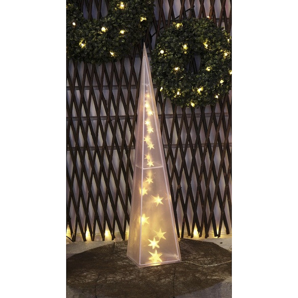 Світлодіодна фігура LightZone LED-Hologrammfigur WK-844-P (піраміда) — це стильна святкова декорація, яка створює ефект зоряного сяйва. Завдяки теплим білим LED-вогникам із голографічним ефектом піраміда виглядає, ніби всередині неї мерехтять зірки. Ідеально підходить для новорічного інтер’єру, вітальні, вітрини або святкової зони в офісі.